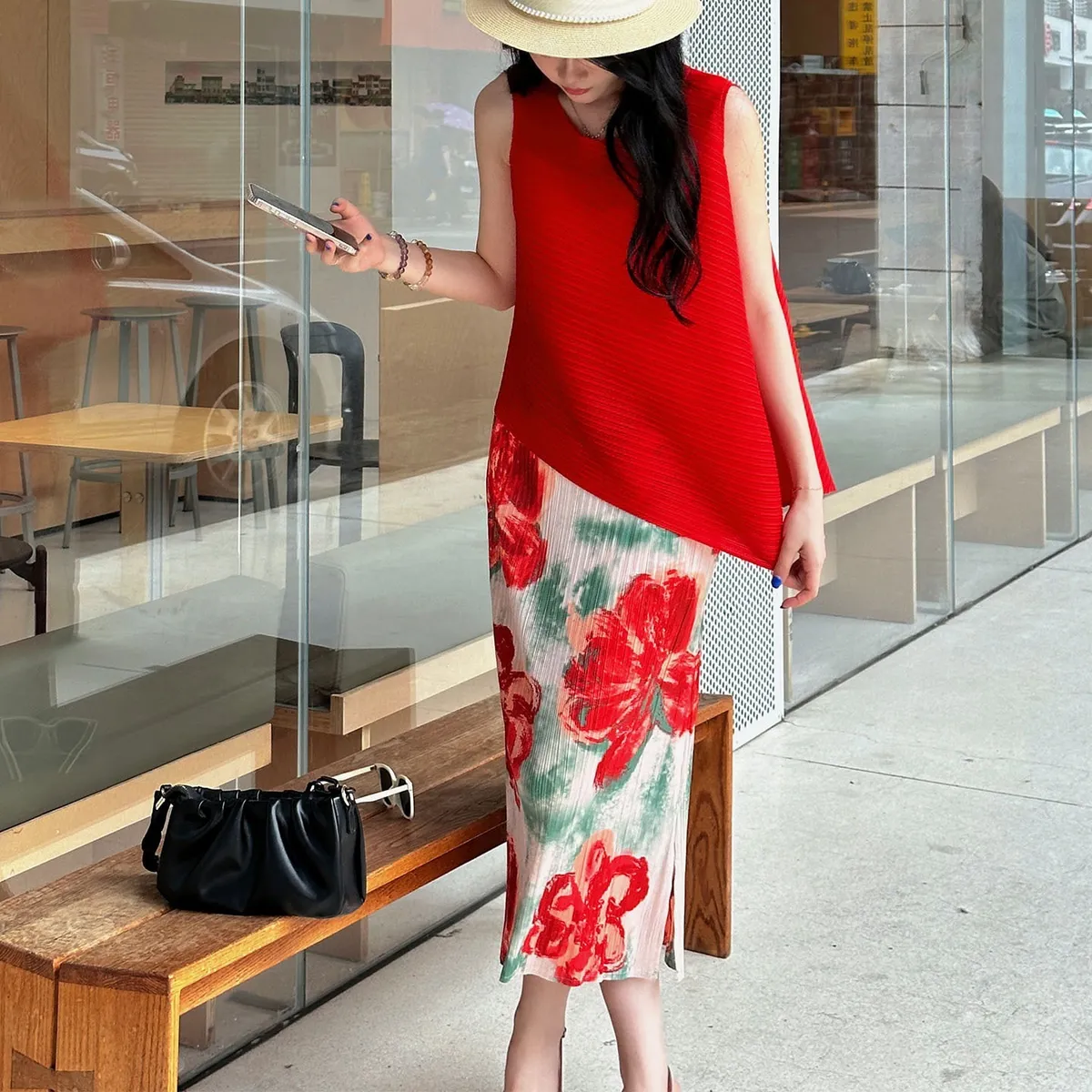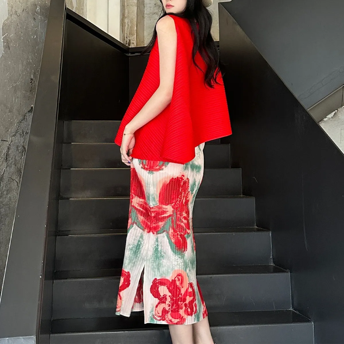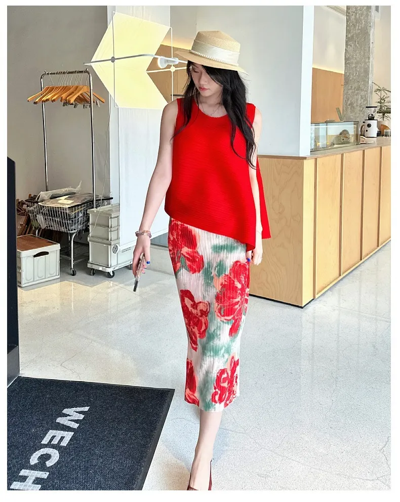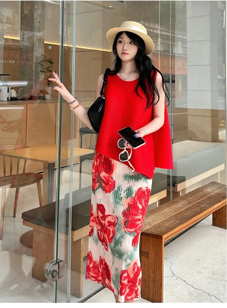 衣都精品- 新款氣質穿搭無袖套頭褶皺半身裙