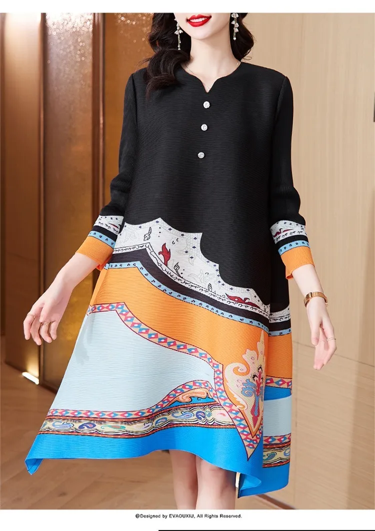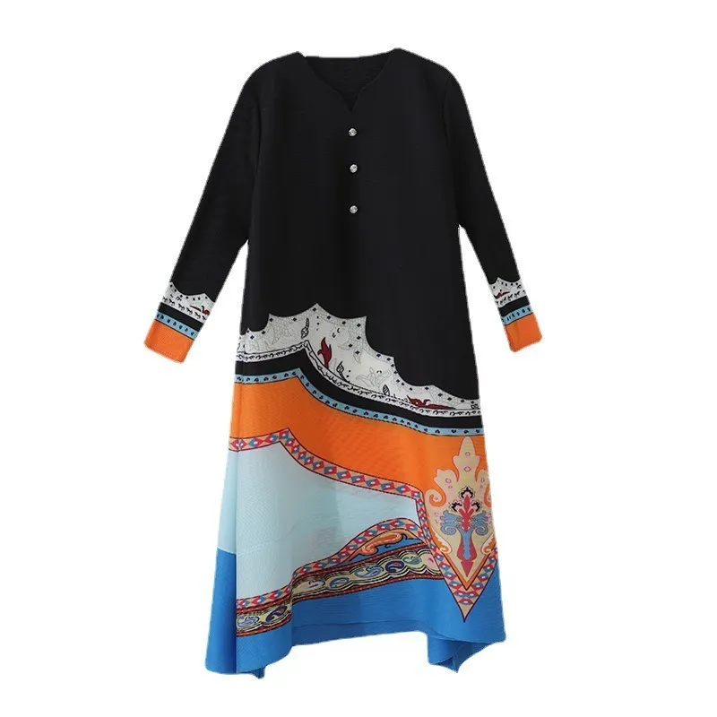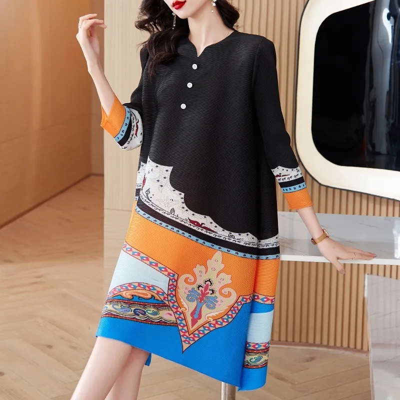 衣都精品- 新款經典款印花國風百搭休閒褶皺上衣