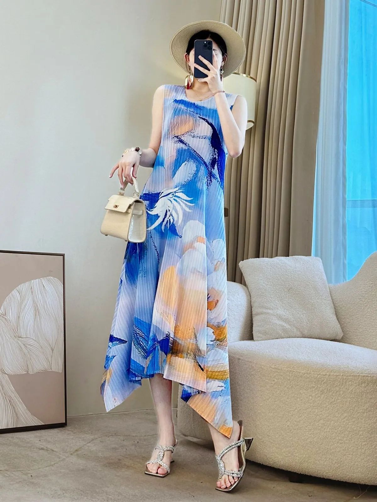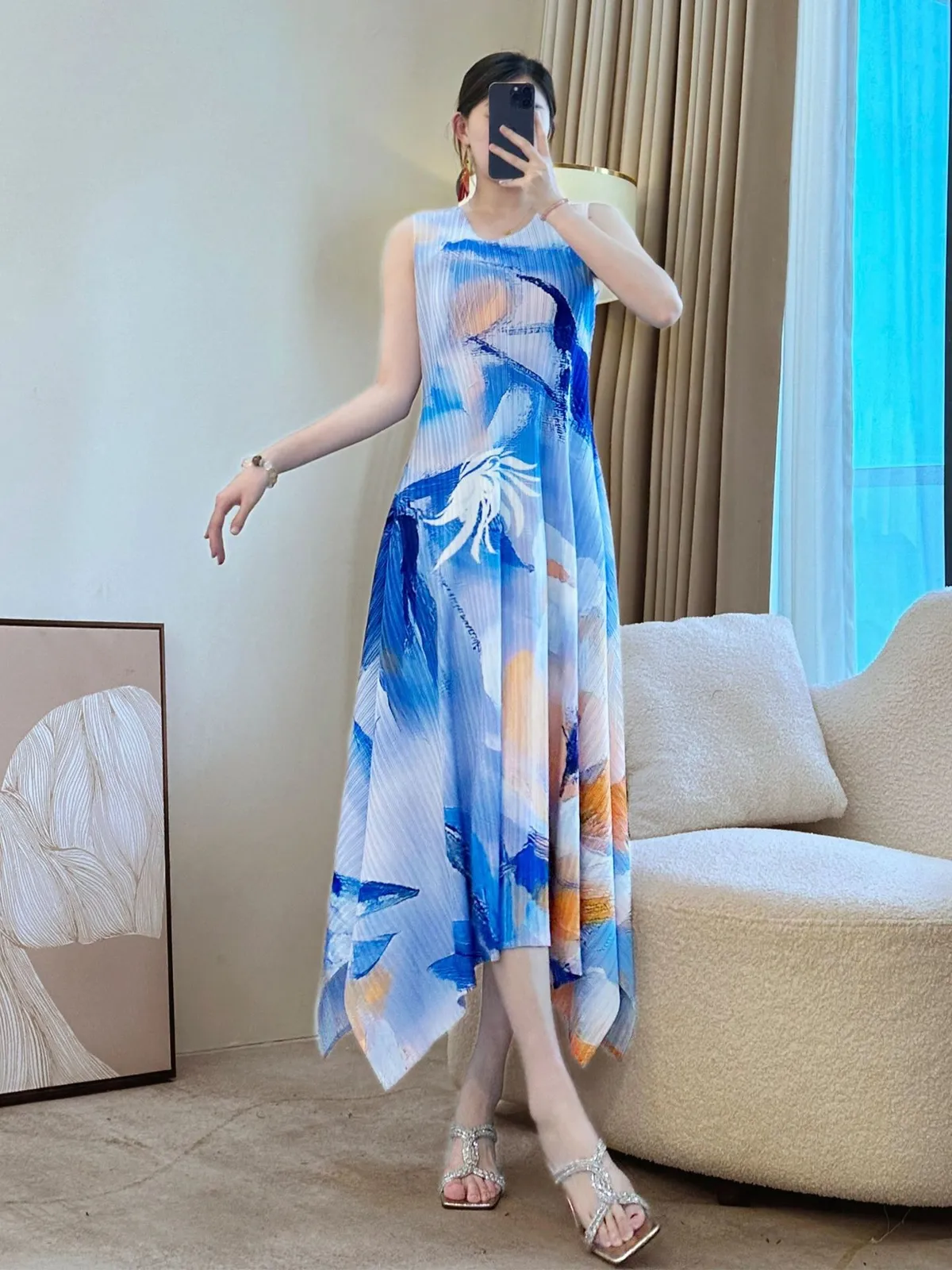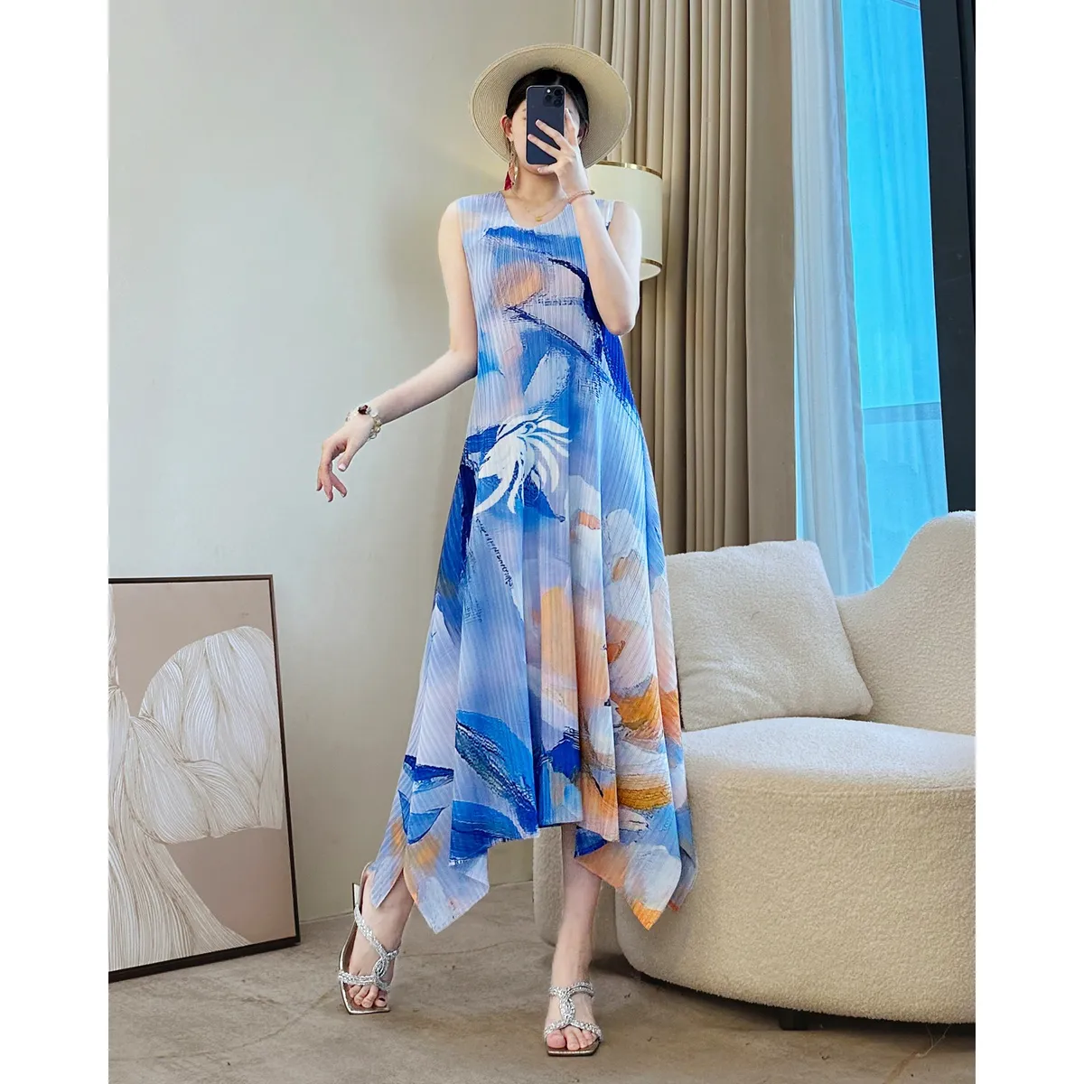 衣都精品- 新款時尚溫柔風優雅印花大碼無袖連衣裙