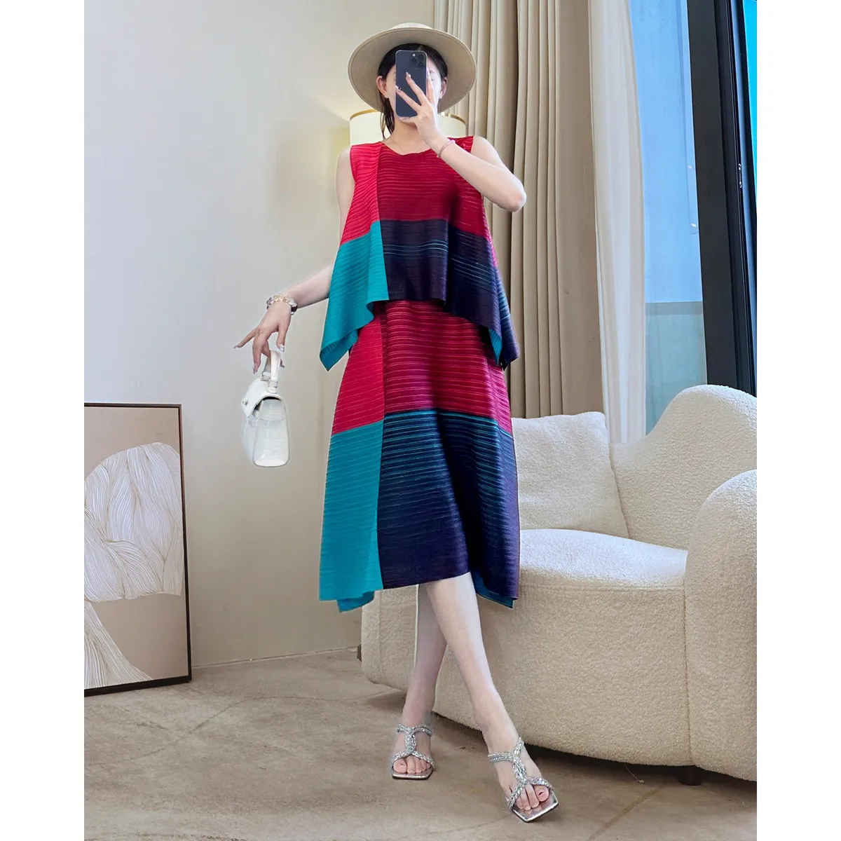 衣都精品- 新款高端時尚背心上衣+寬鬆半身裙褶皺兩件式套裝