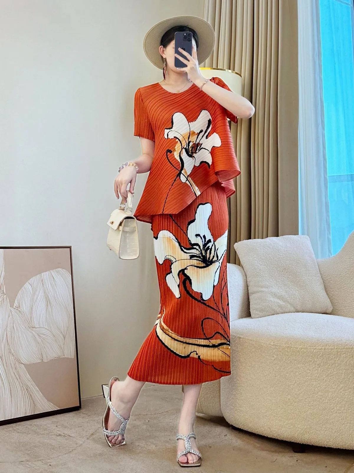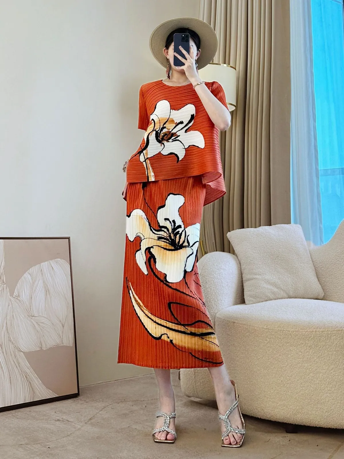 衣都精品- 新款時尚慵懶風上衣+高端褶皺半身裙兩件式套裝