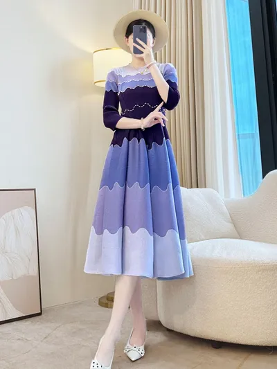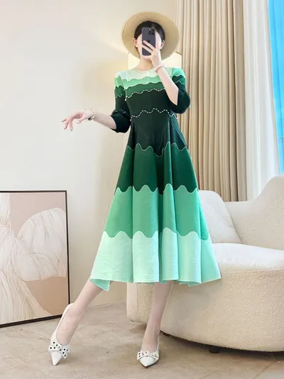 衣都精品- 新款時尚百搭顯瘦花苞法式漸變褶皺連衣裙