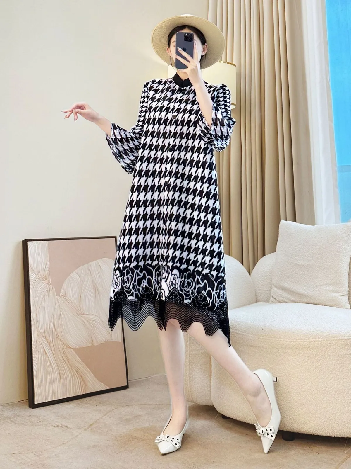 衣都精品- 新款洋氣大碼氣質赫本風褶皺連衣裙