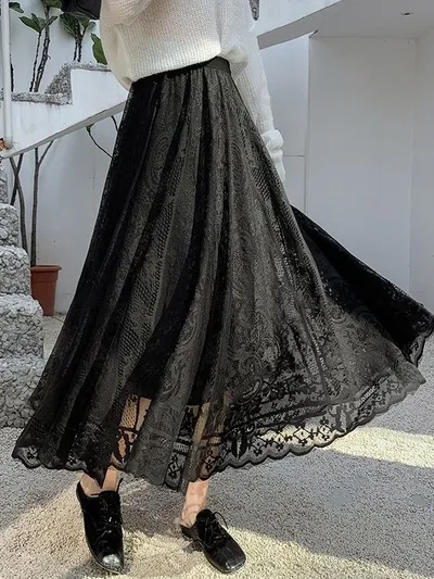 衣都精品- 新款高腰繡花高端網紗半身裙