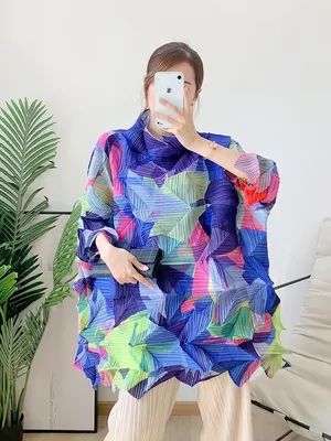衣都精品- 新款中長款寬鬆鑽石褶印花褶皺上衣