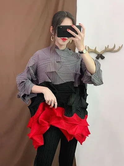 衣都精品- 新款時尚鑽石褶套頭顯瘦大碼褶皺上衣