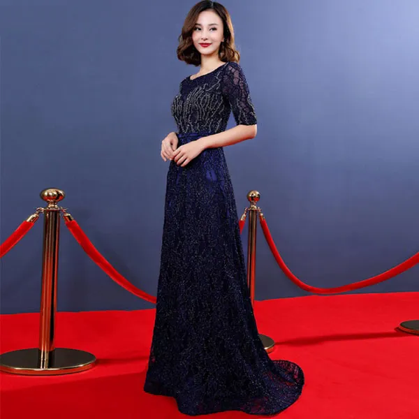 衣都精品-中袖高貴優雅時尚長款顯瘦高端宴會晚禮服