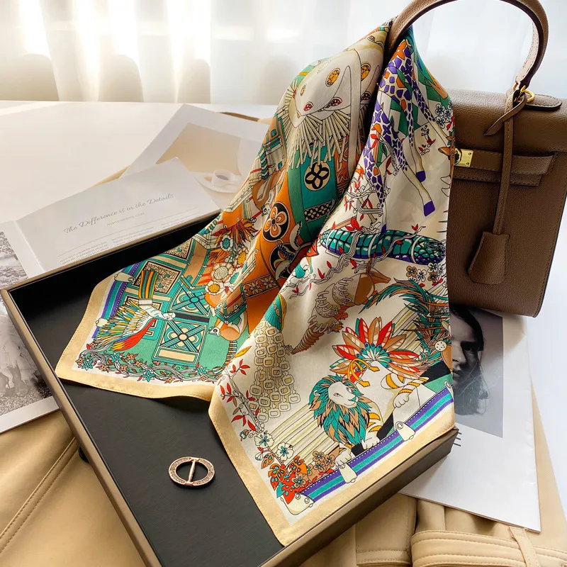 衣都精品- 2022冬季新款韓國百搭動物款真絲小方巾
