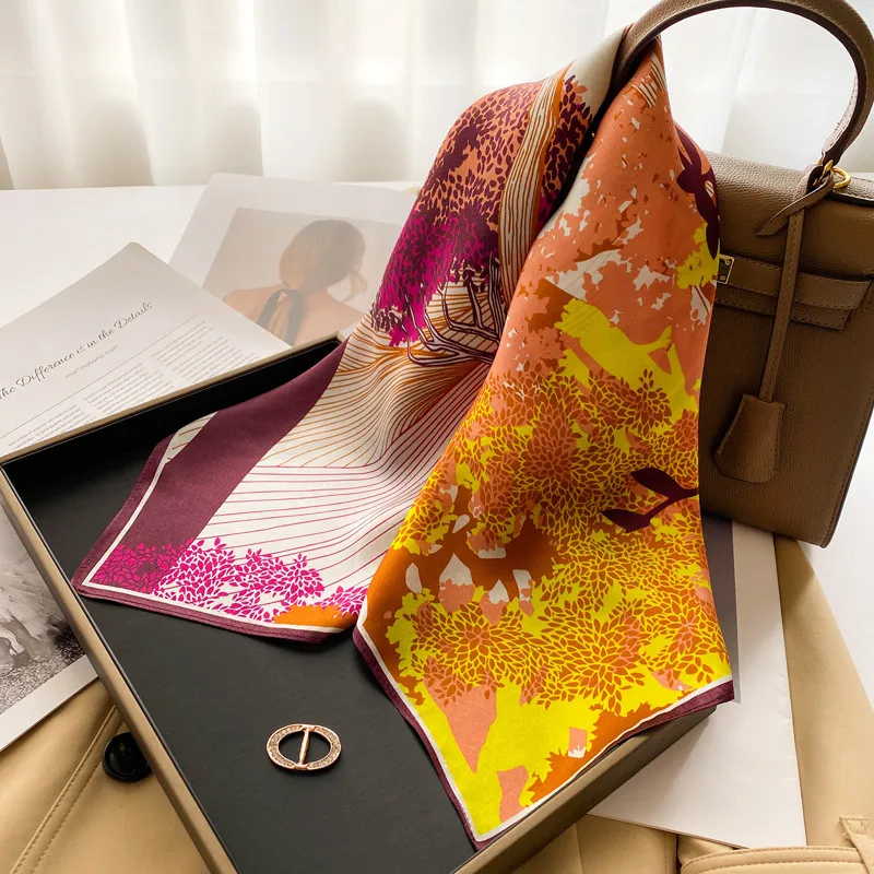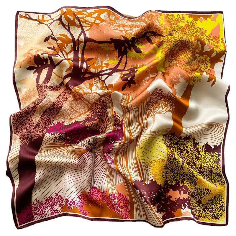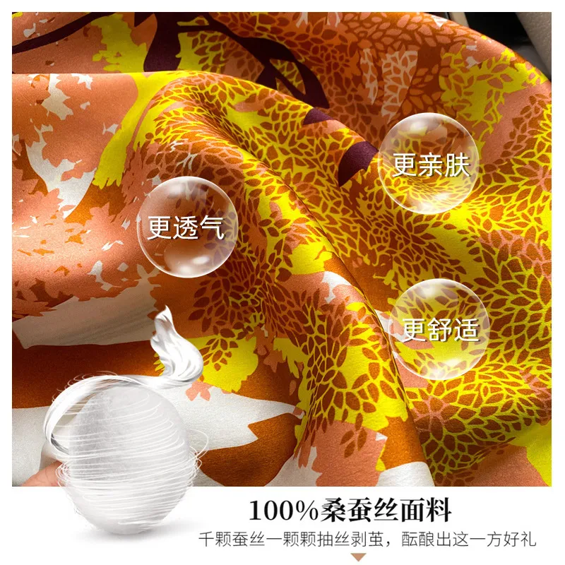衣都精品- 2022冬季新款黃色雨林百搭真絲中方巾