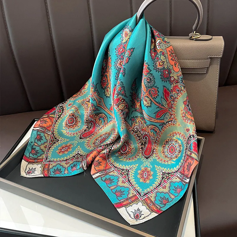 衣都精品- 2022冬季新款民族風腰果花真絲中方巾