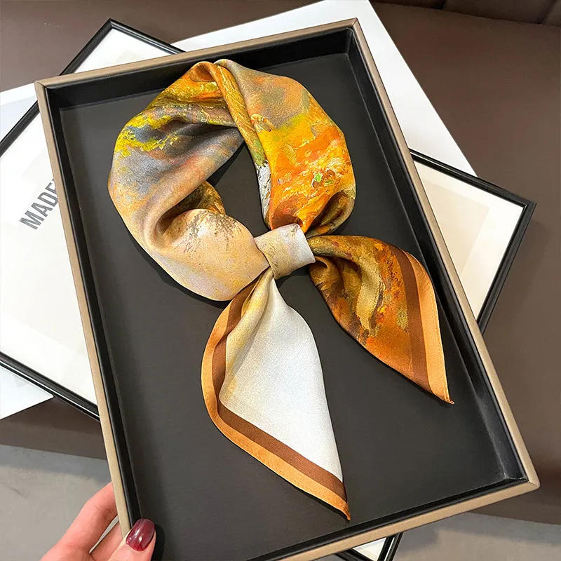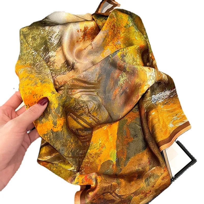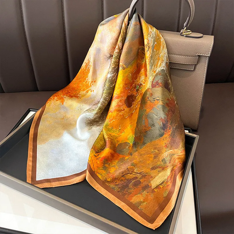 衣都精品- 2022冬季新款法式復古橘色油畫真絲圍巾