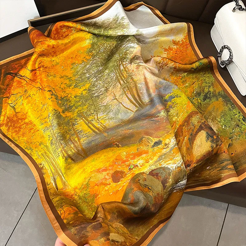 衣都精品- 2022冬季新款黃色雨林百搭真絲中方巾