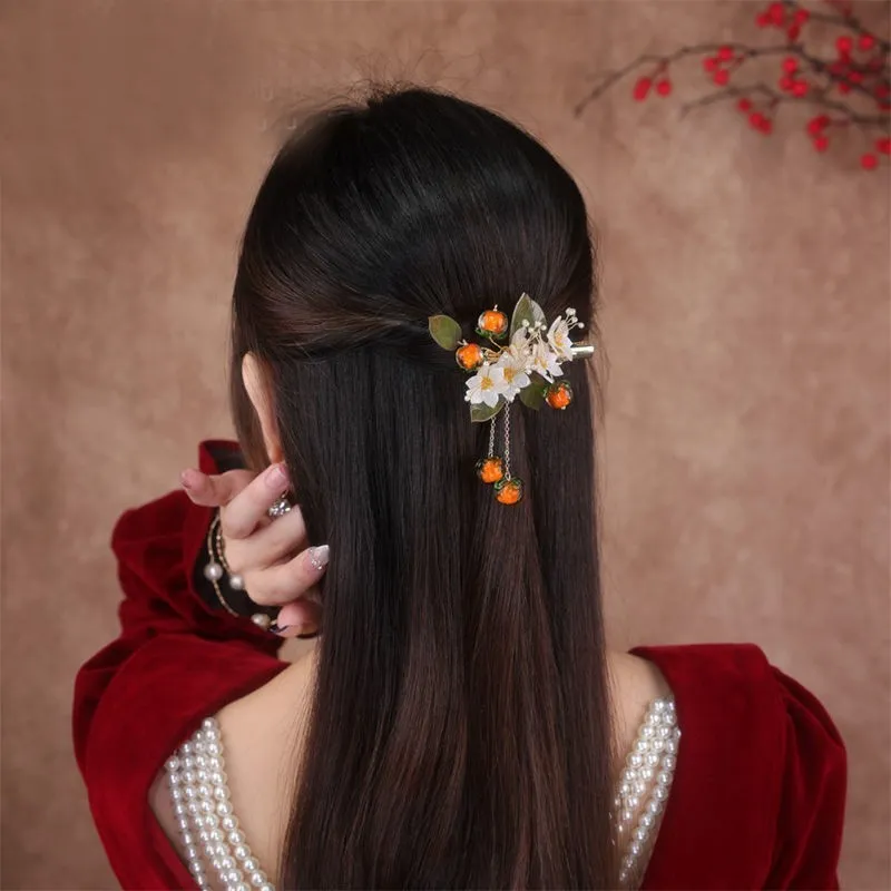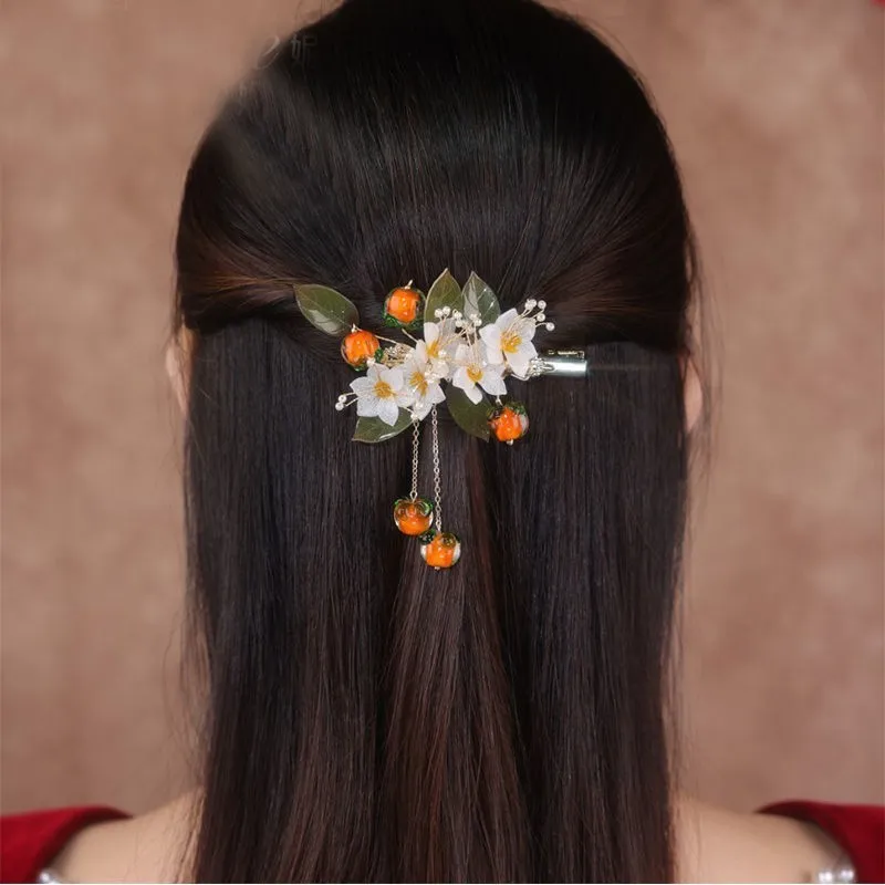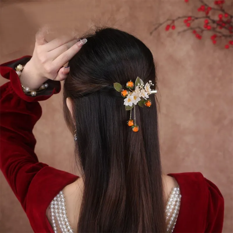 衣都精品- 2022冬季新款好柿花生橙色柿子設計髮簪