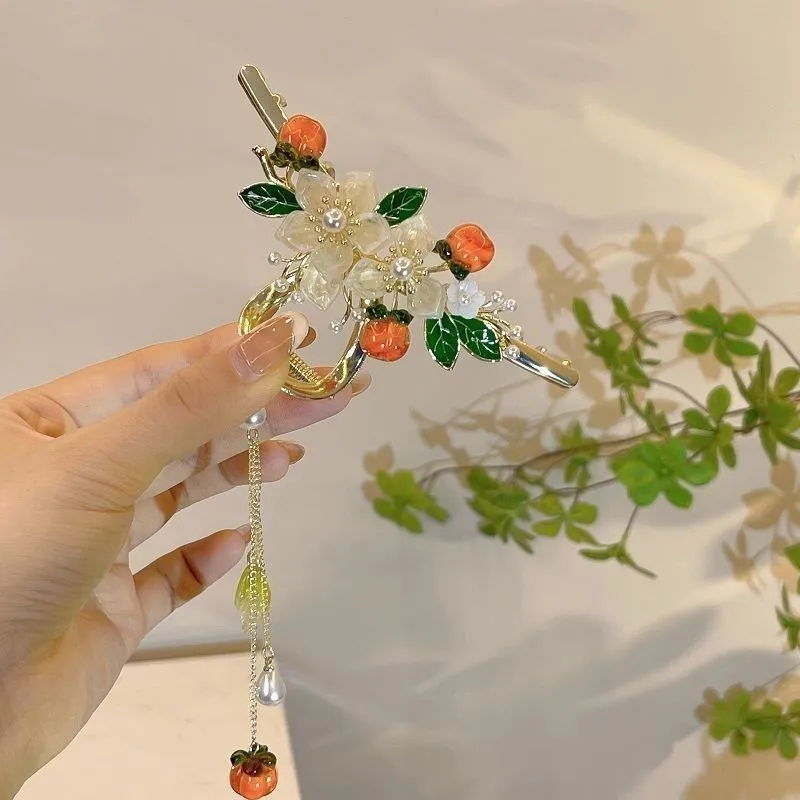 衣都精品- 2022冬季新款好柿花生橙色柿子設計髮簪