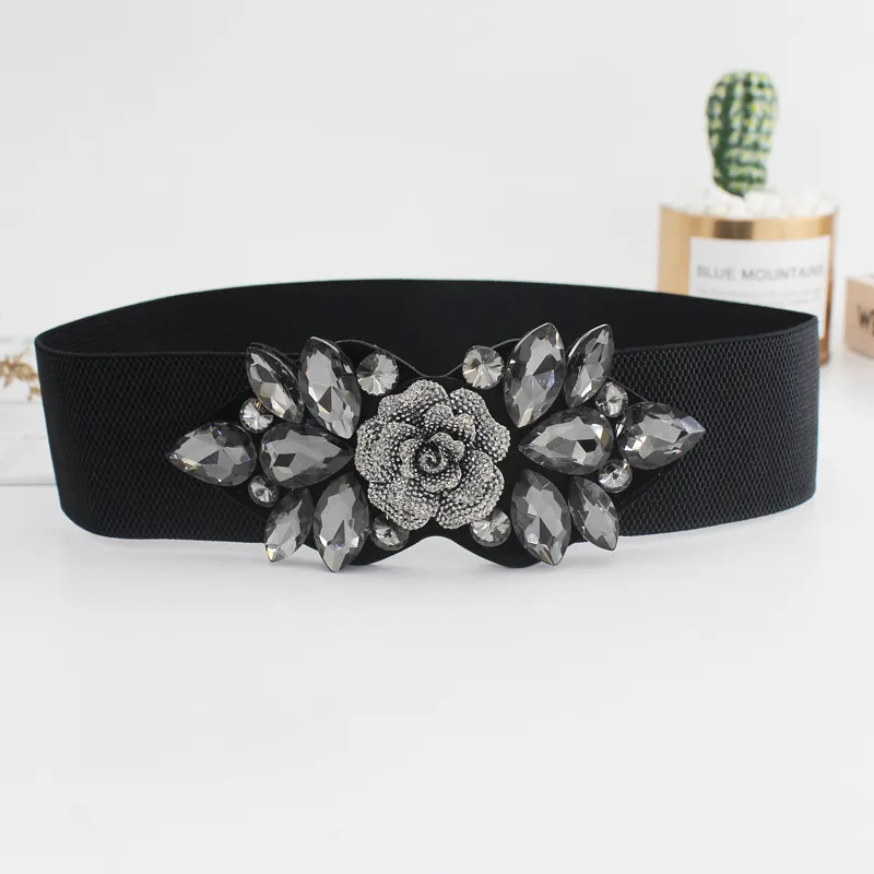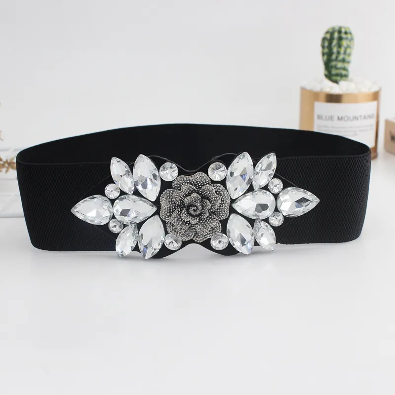 衣都精品- 2022冬季新款玫瑰花水鑽鑲嵌彈力鬆緊腰腰帶