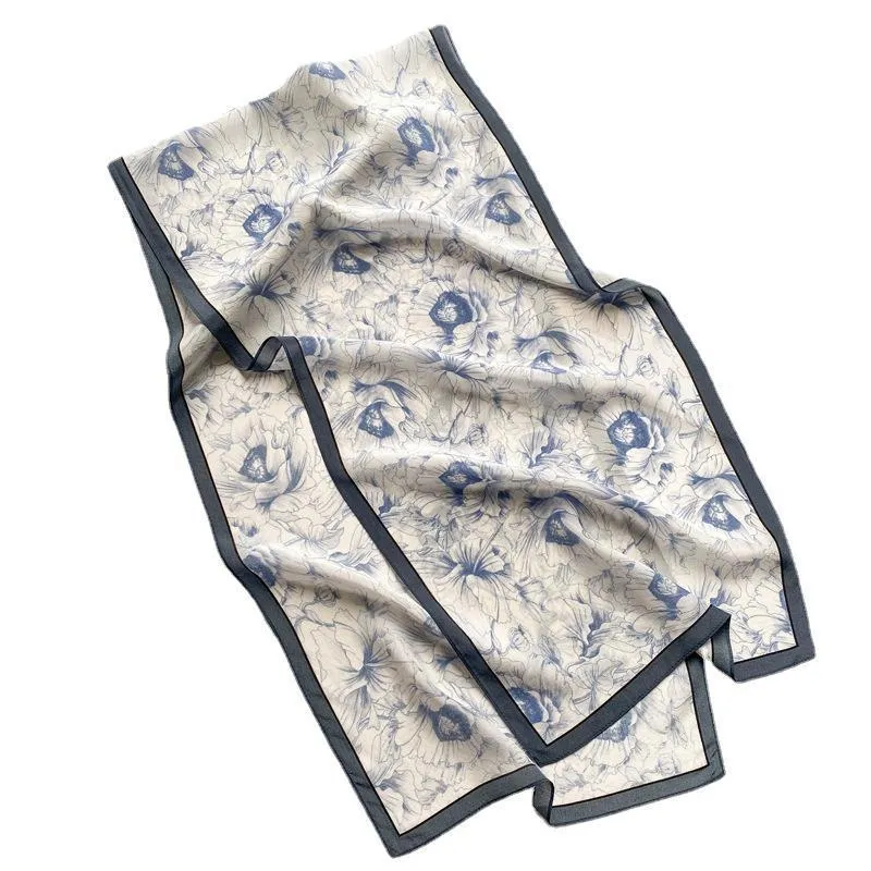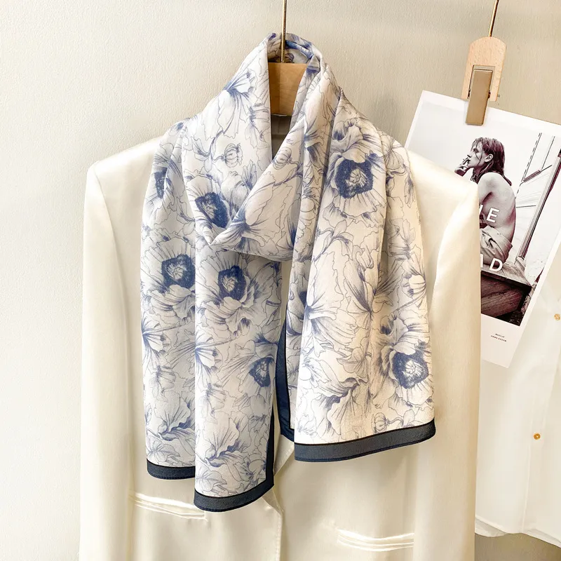 衣都精品- 2022冬季新款素描牡丹風真絲長條絲巾