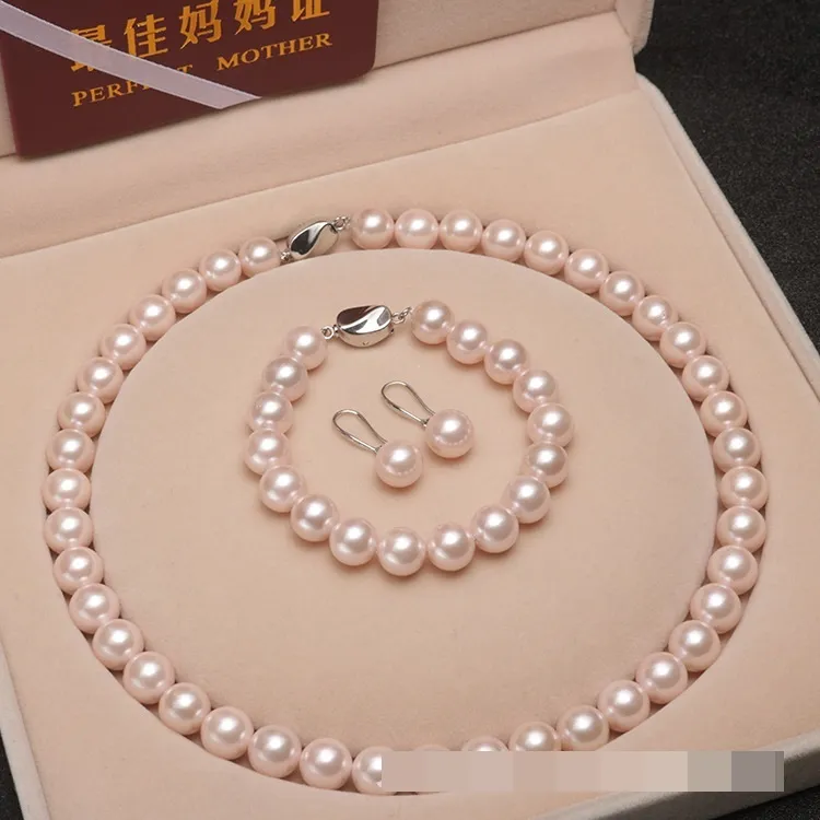 衣都精品- 2022冬季新款正圓貝殼珍珠項鍊+手鏈+耳環首飾套裝