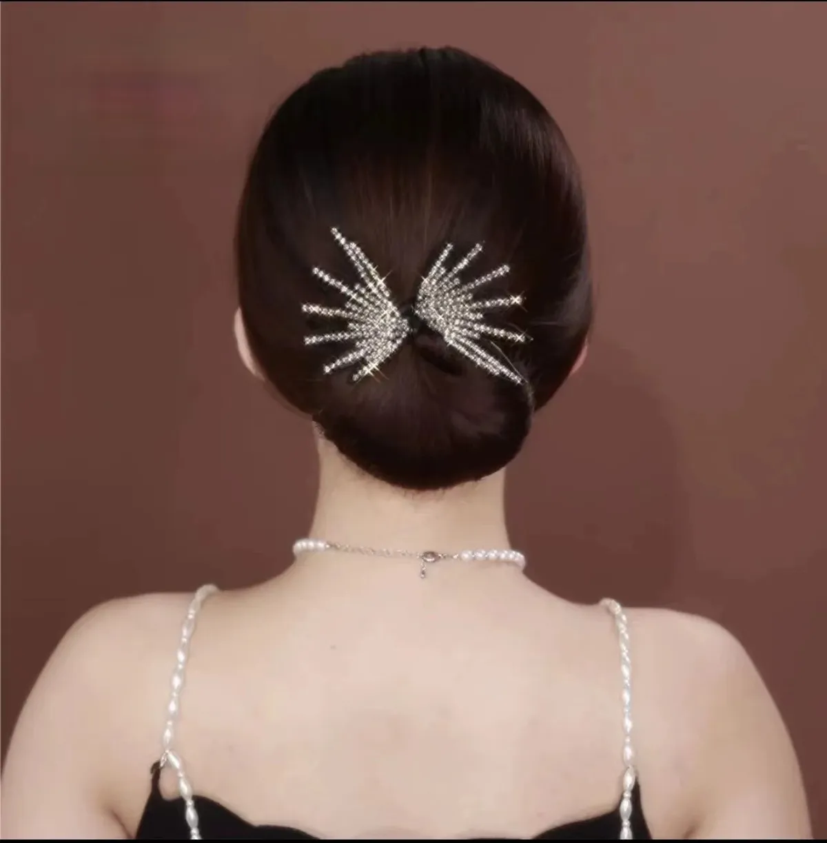 衣都精品- 2022冬季新款復古高紮丸子頭蝴蝶掛珠髮飾