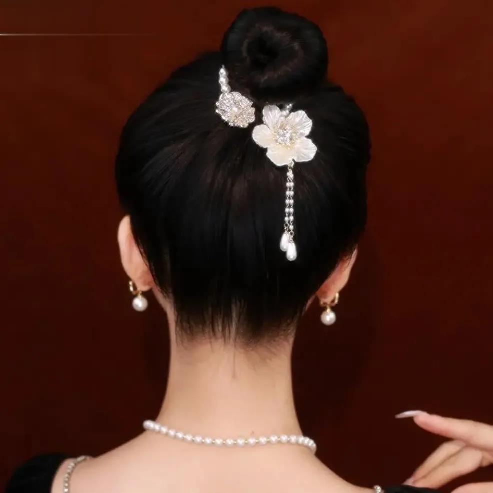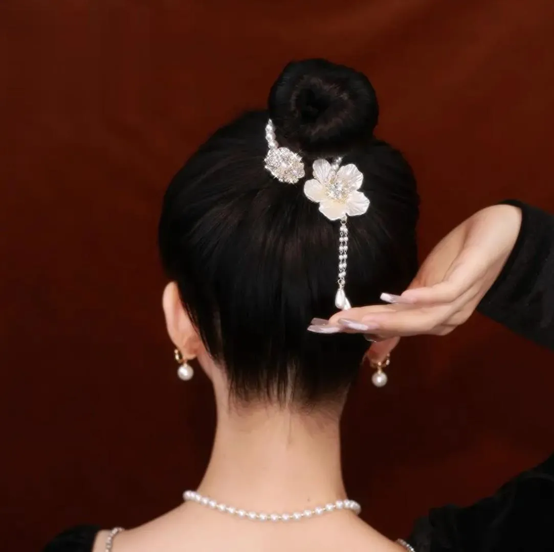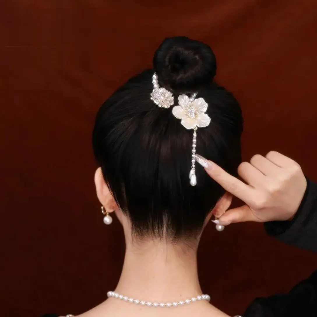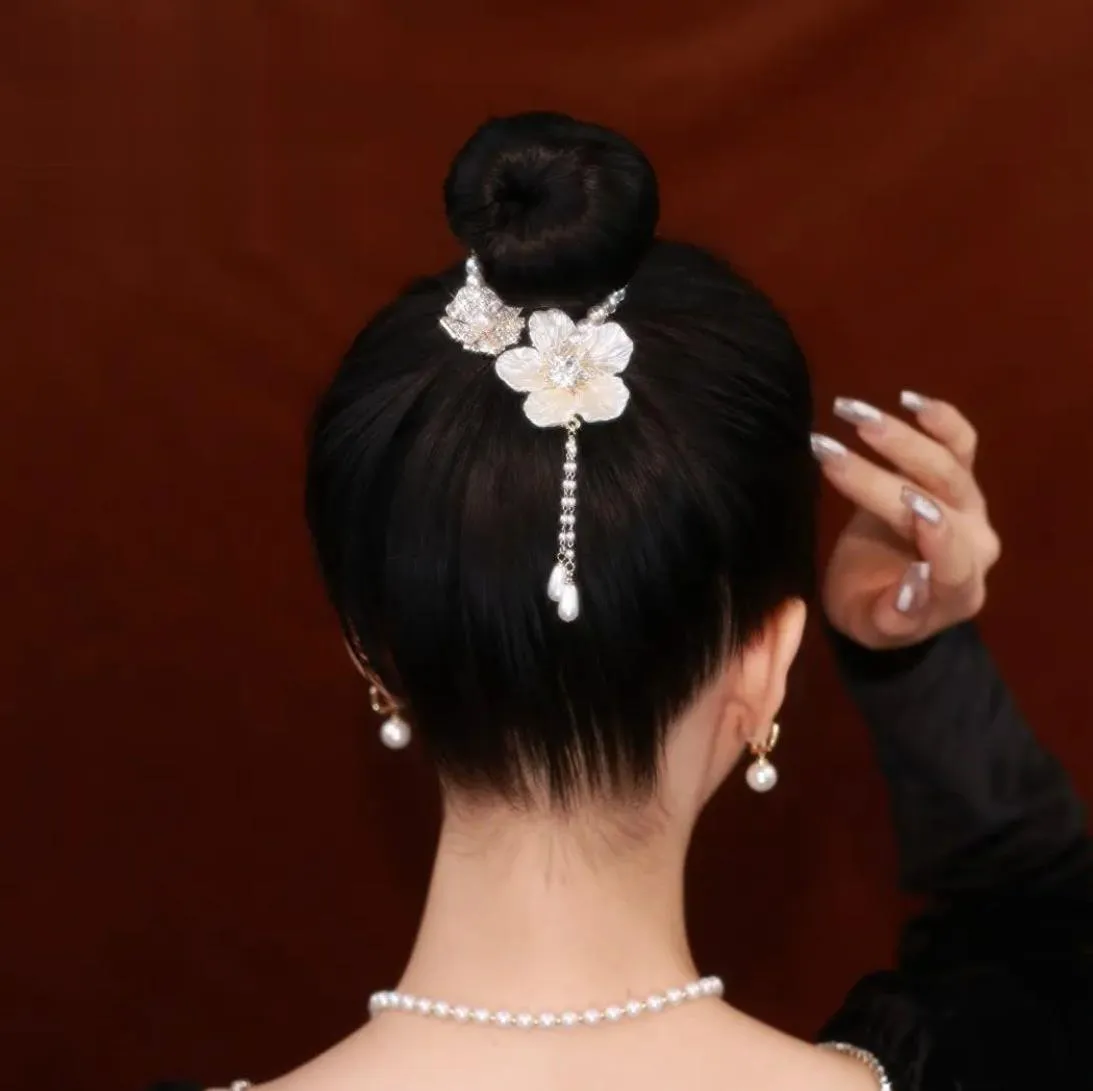 衣都精品- 2022冬季新款復古山茶花流蘇馬尾夾髮飾