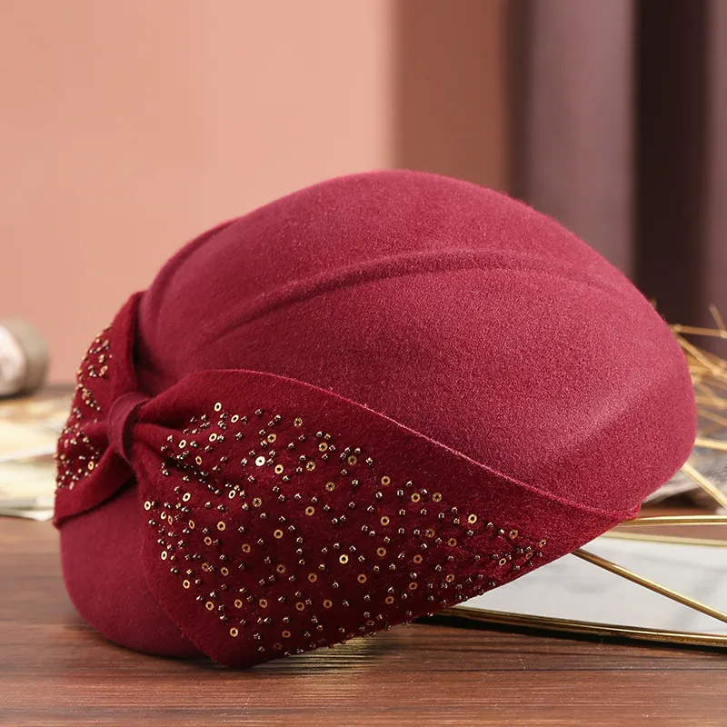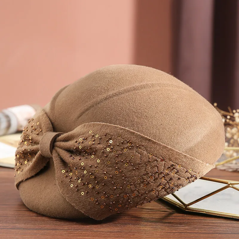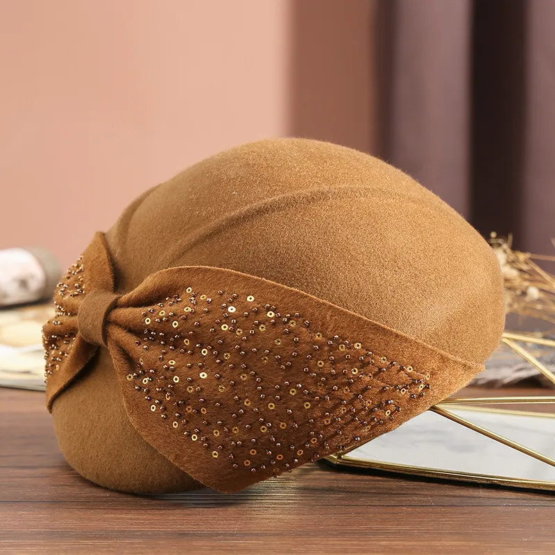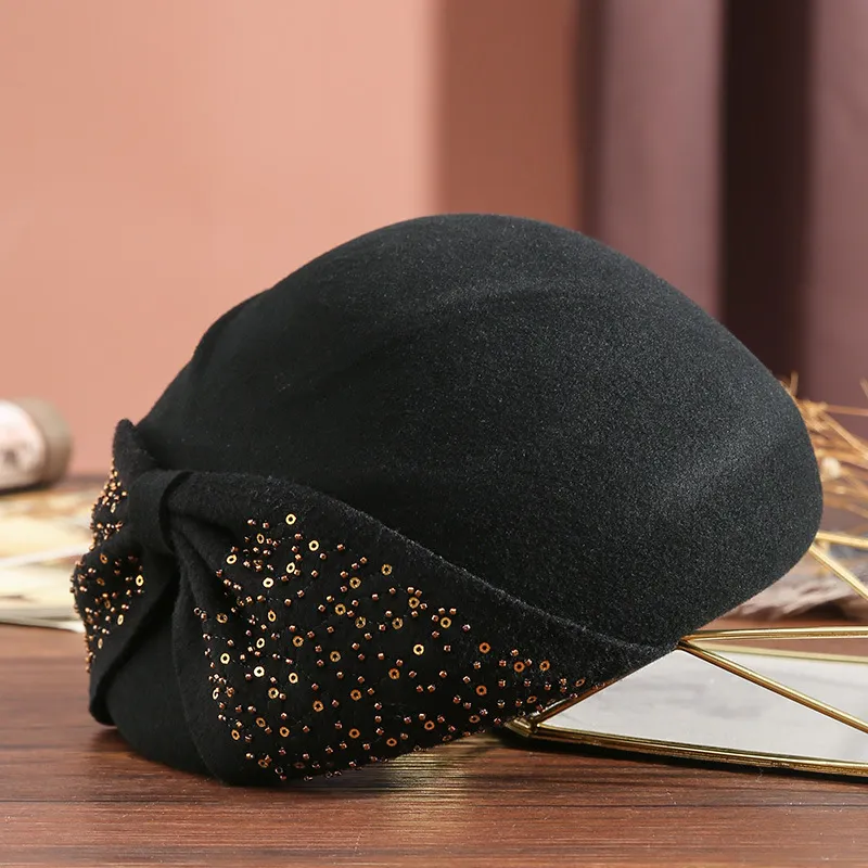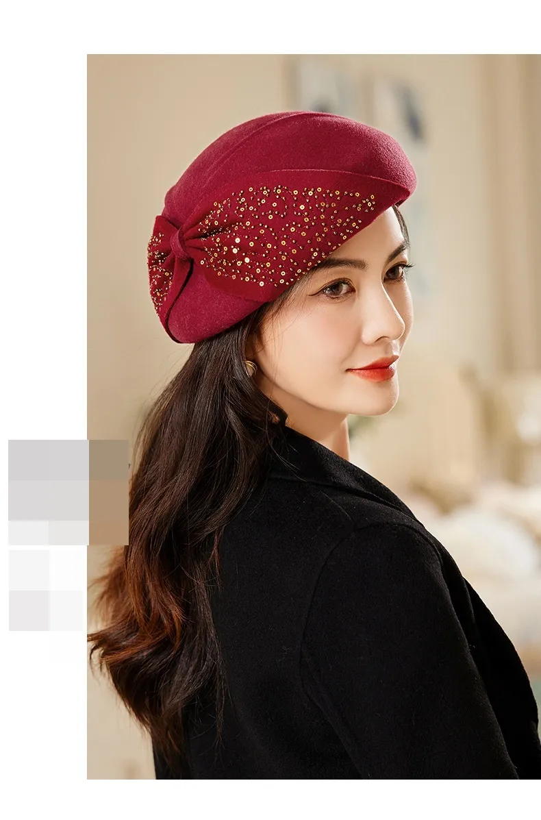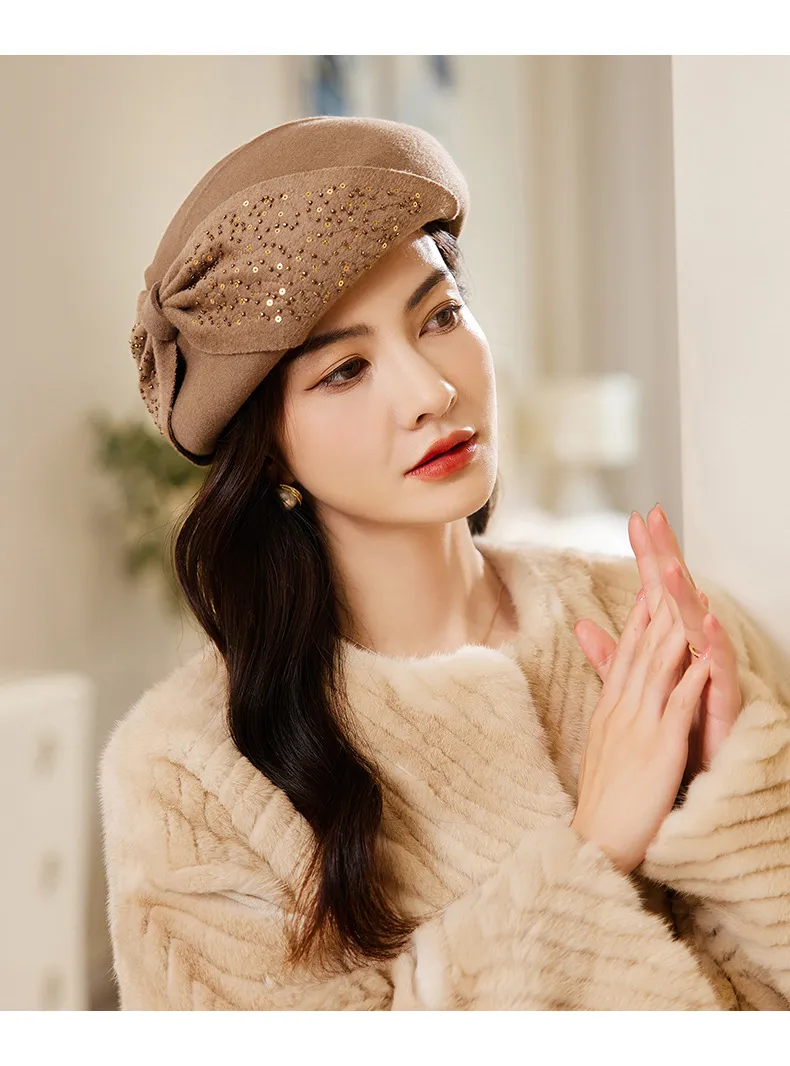 衣都精品- 2022冬季新款復古大蝴蝶結亮片貝雷帽