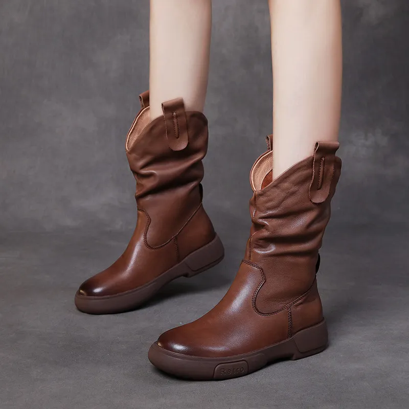 衣都精品- 2022冬季新款頭層牛皮中筒戶外馬靴