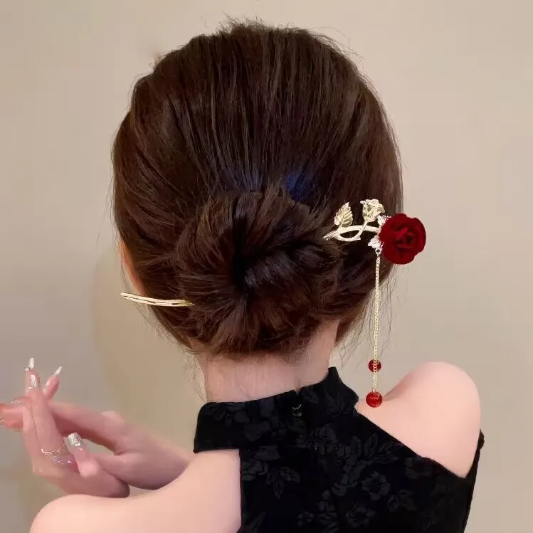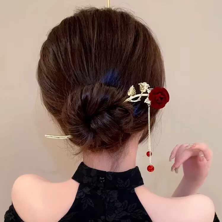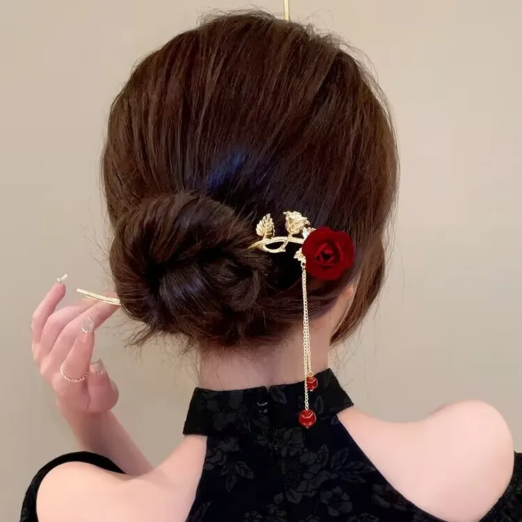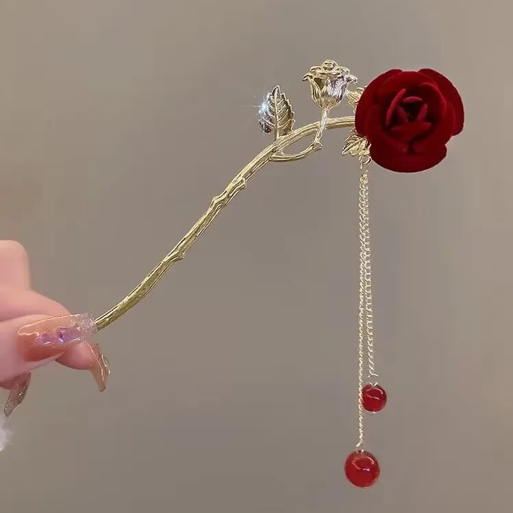 衣都精品- 2022冬季新款古風步搖精緻流蘇玫瑰髮簪