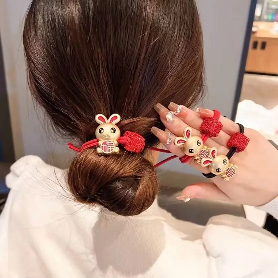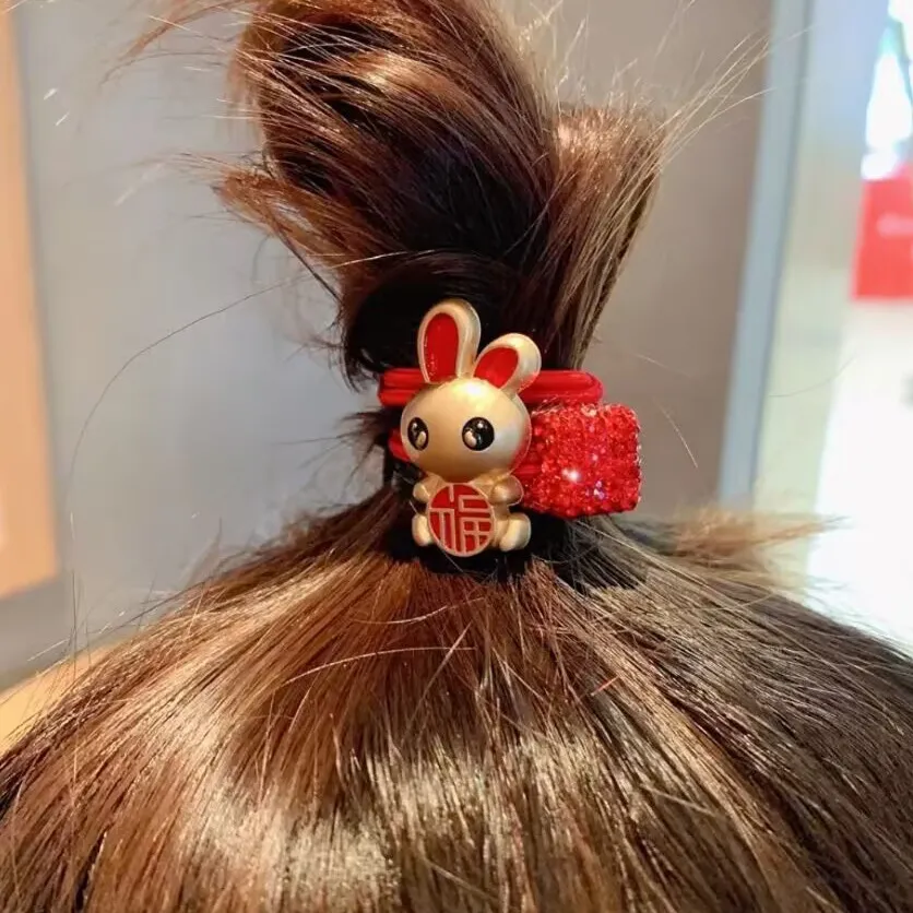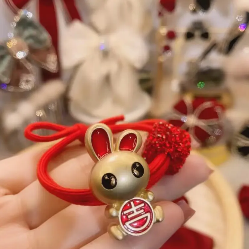 衣都精品- 2022冬季新款新年氛圍飄帶兔子髮夾