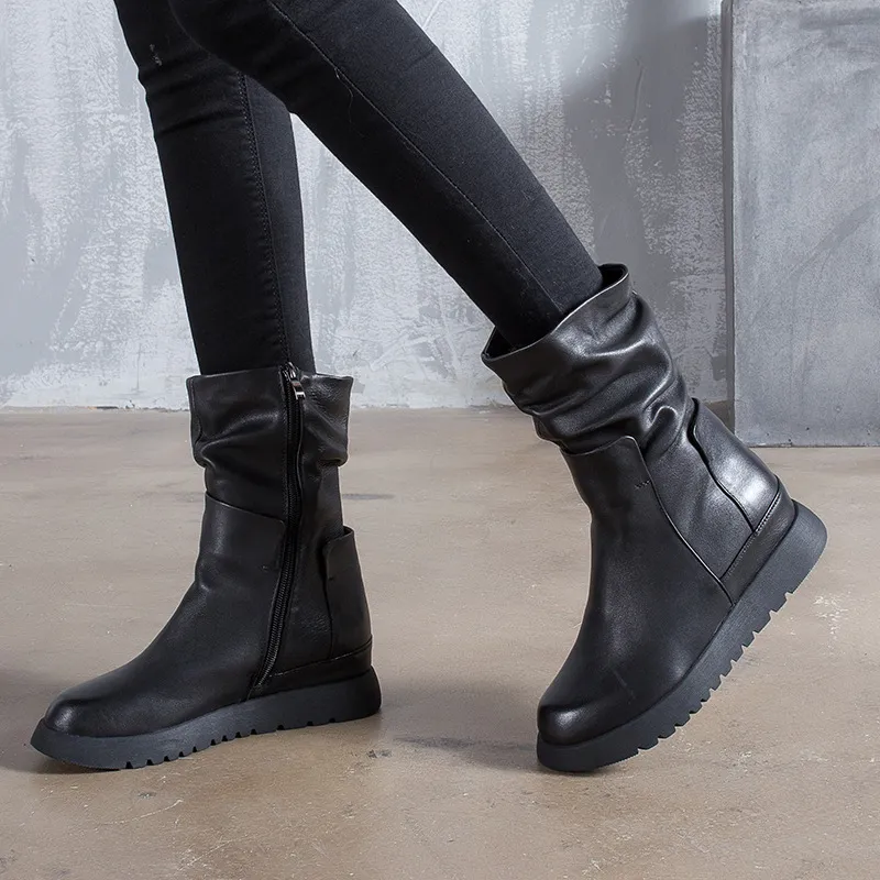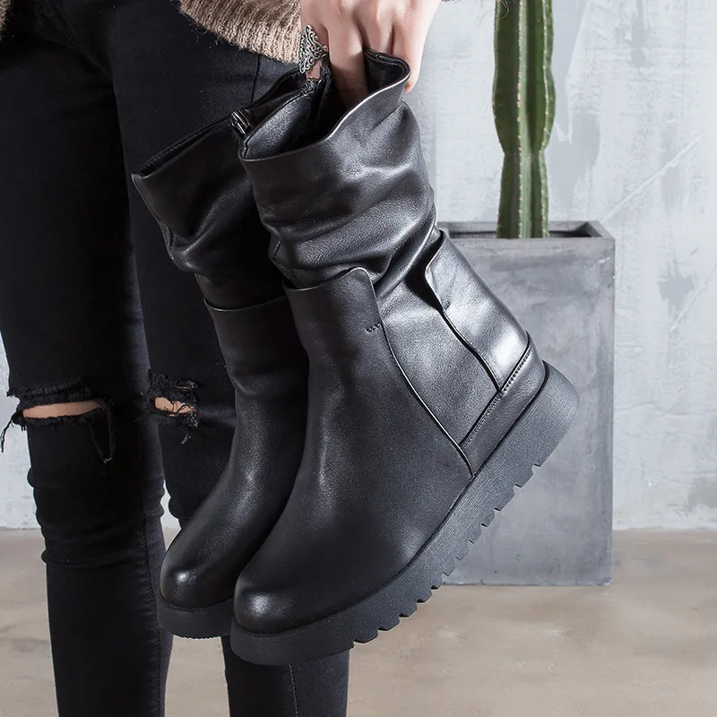 衣都精品- 2022冬季新款原創手工中筒真皮靴