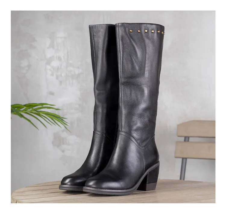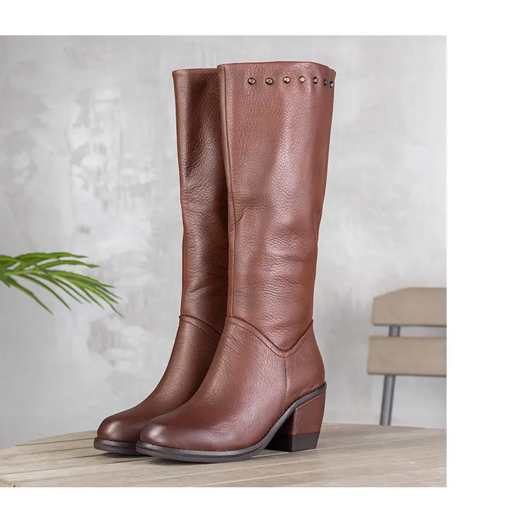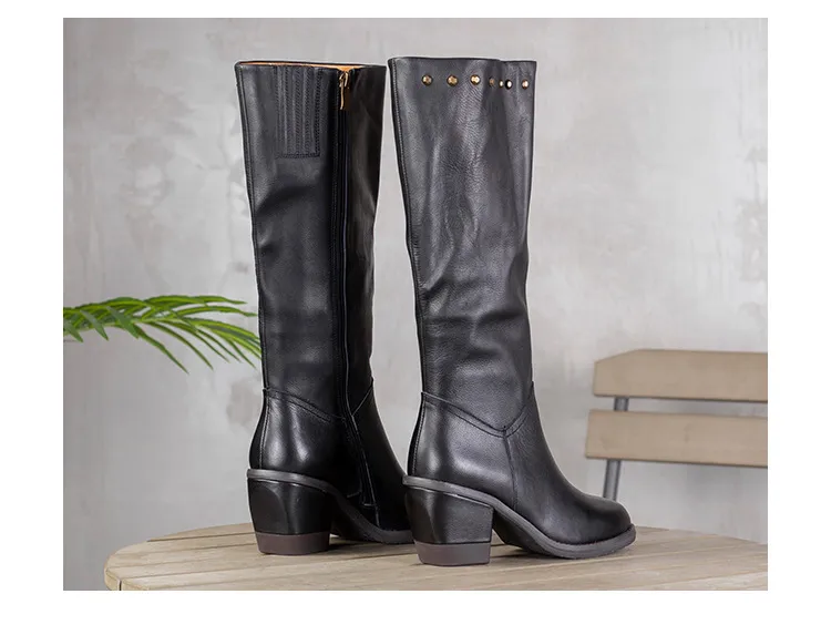 衣都精品- 2022冬季新款真皮不過膝粗跟高筒靴