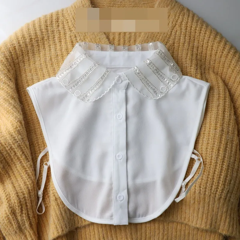 衣都精品- 2022冬季新款百搭領頭釘珠繡線亮片裝飾領子