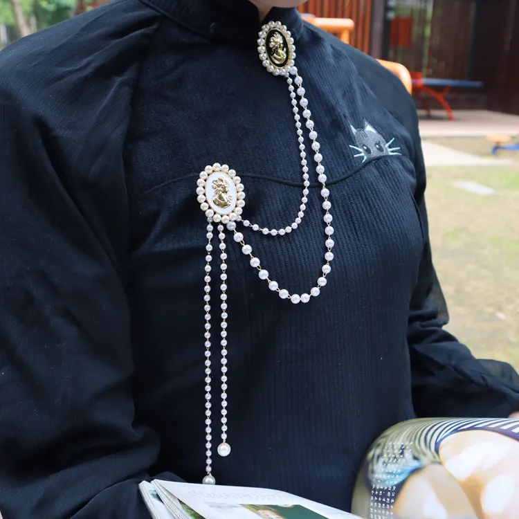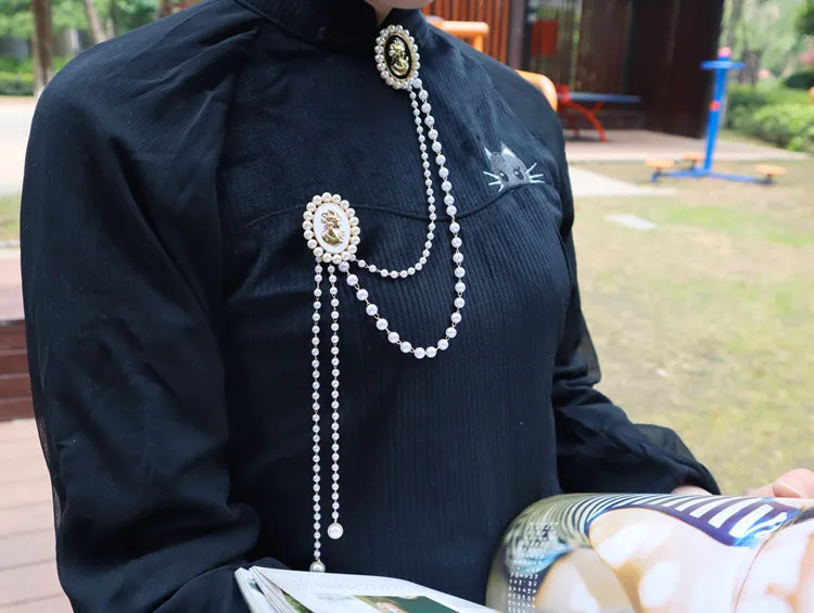 衣都精品- 2022冬季新款民族風珍珠鏈條胸針掛件