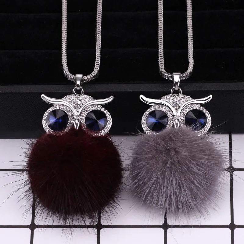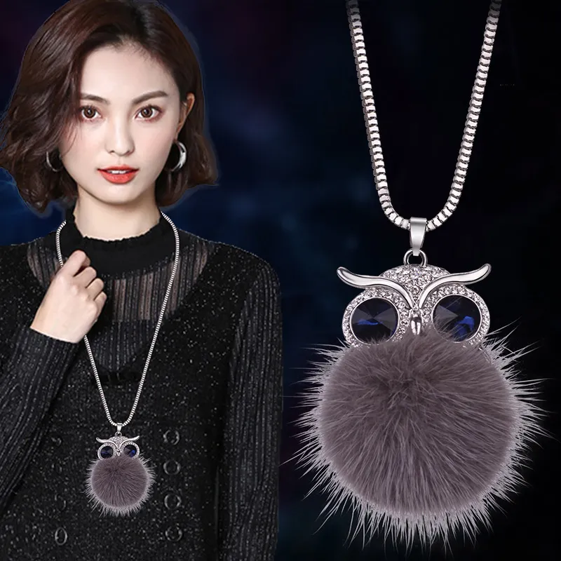 衣都精品- 2022冬季新款水晶貓頭鷹毛衣鏈項鍊
