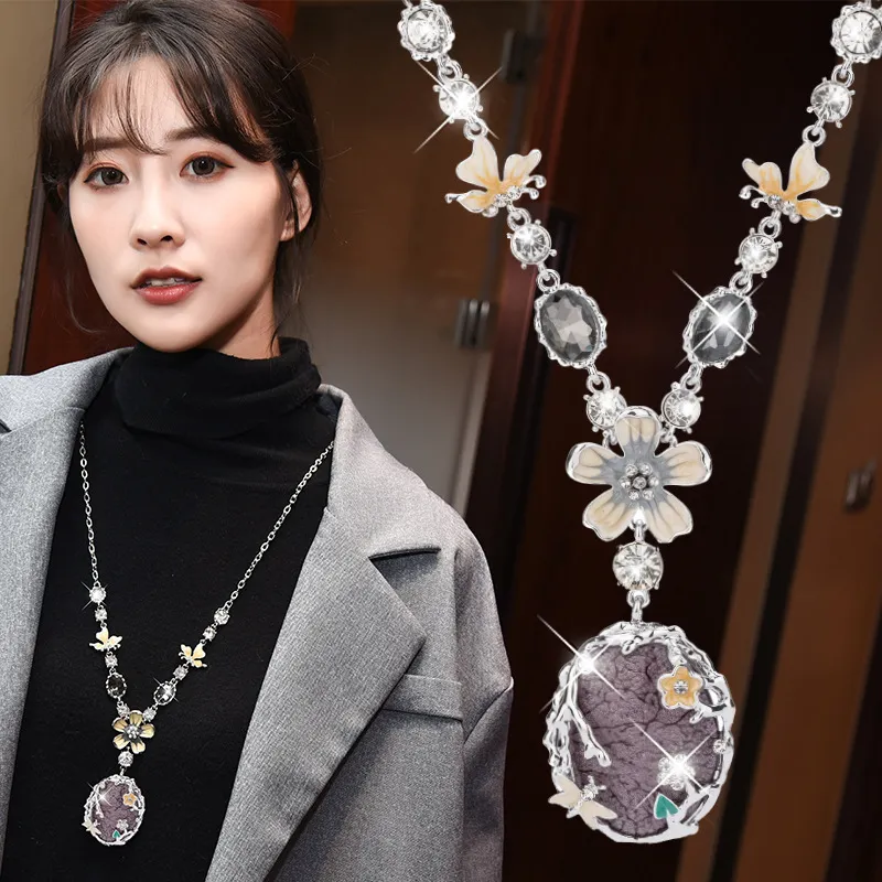 衣都精品- 2022冬季新款簡約大氣水晶毛衣鏈項鍊