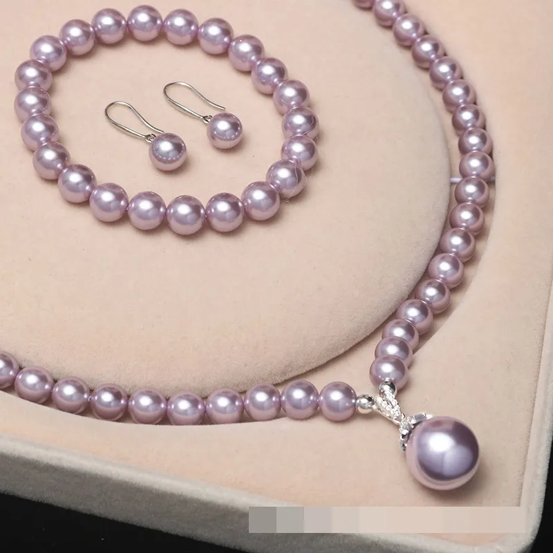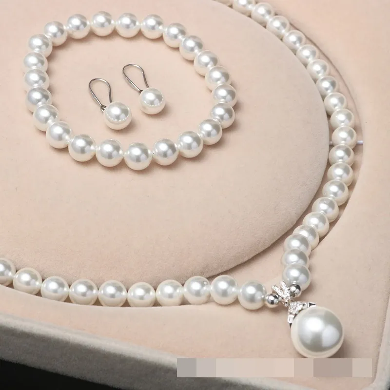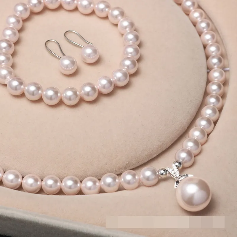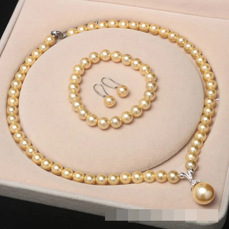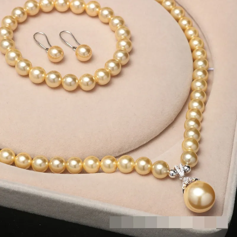 衣都精品- 2022冬季新款天然貝殼珍珠項鍊+手鏈+耳環三件套