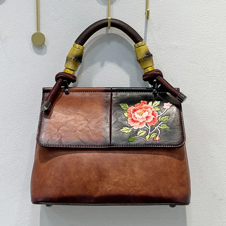 衣都精品- 2022冬季新款復古中國風刺繡手提竹節包