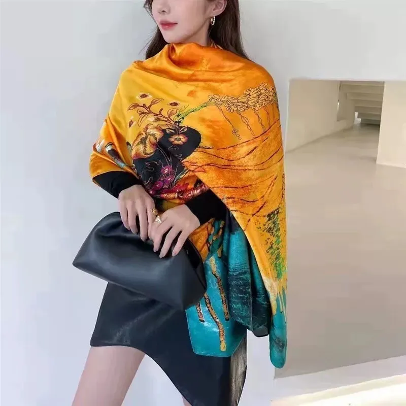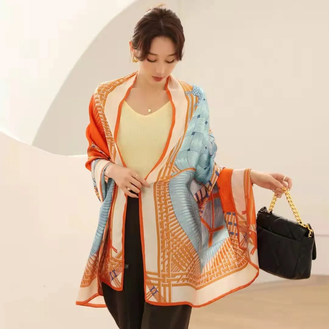 衣都精品- 2022冬季新款波西米亞風仿真絲麗錦緞大方巾