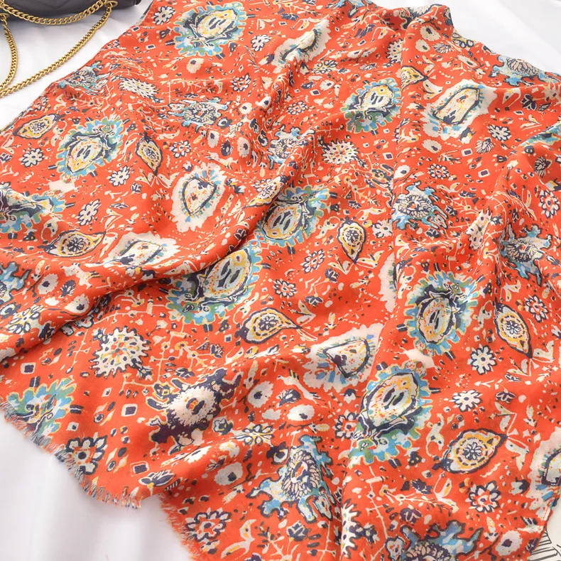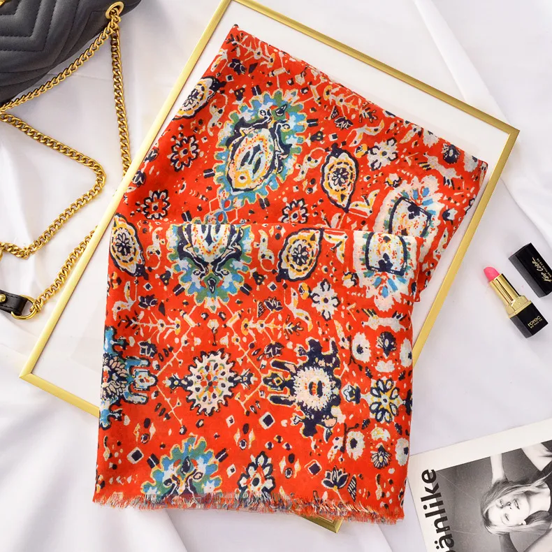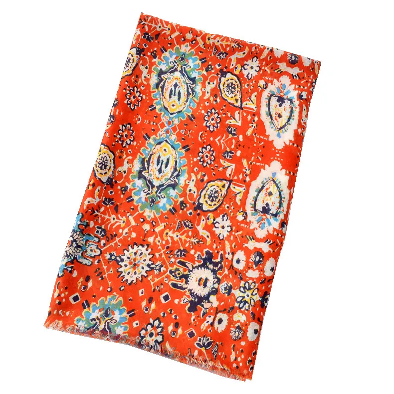 衣都精品- 2022冬季新款民族風腰果印花絲巾