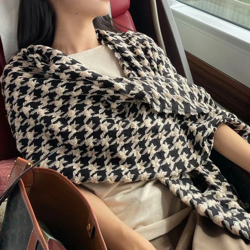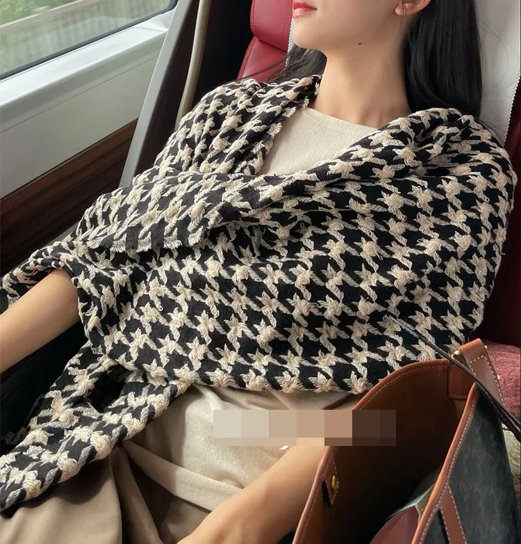 衣都精品- 2022冬季新款洋氣立體千鳥格圍巾