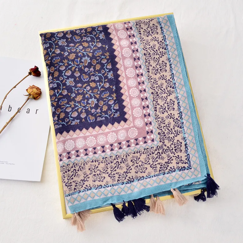 衣都精品- 2022冬季新款復古民族風幾何碎花圍巾