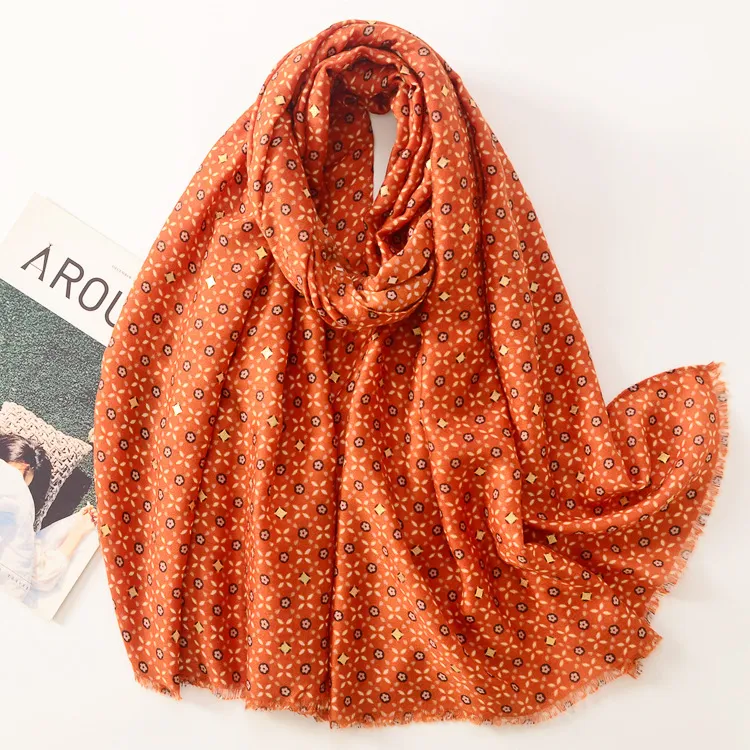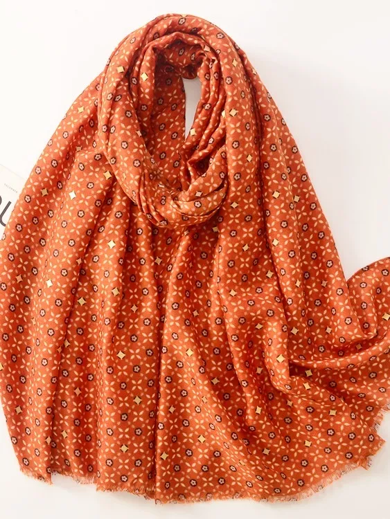 衣都精品- 2022冬季新款燙金亮片植物花卉印花大紗巾