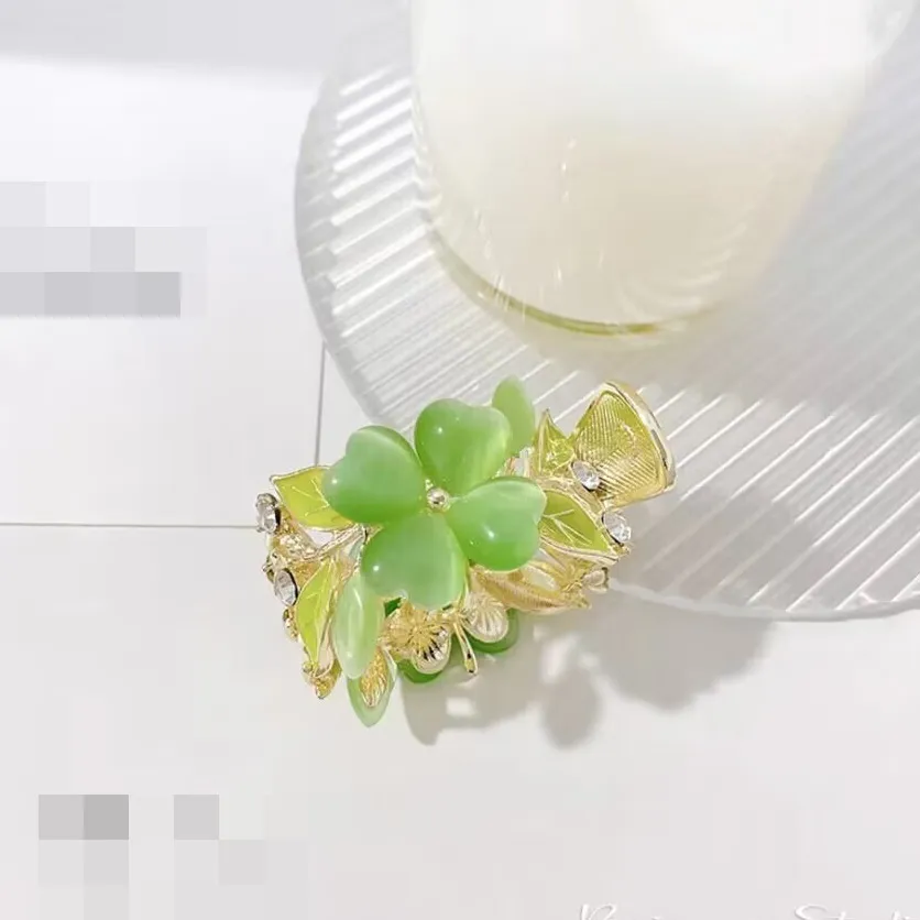 衣都精品- 2022冬季新款高級感輕奢綠色水晶髮夾
