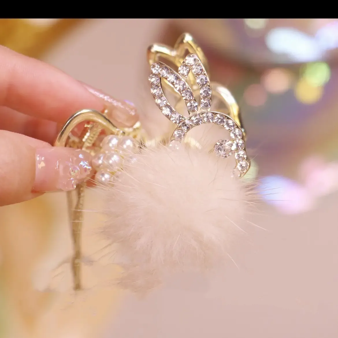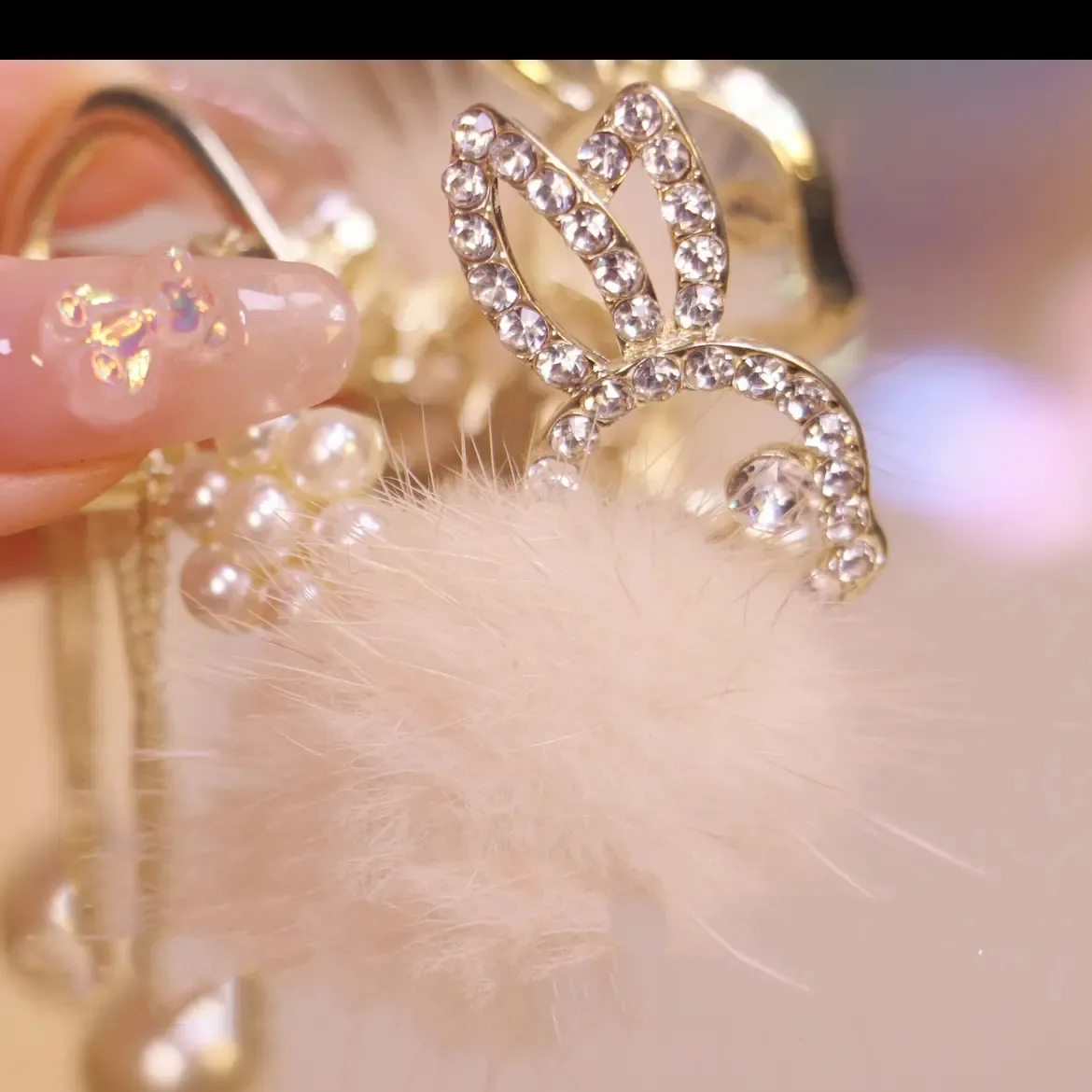 衣都精品- 2022冬季新款精緻毛絨兔兔流蘇馬尾夾髮飾