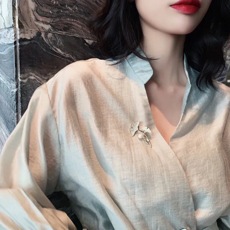 衣都精品- 2022冬季新款高檔大氣創意銀杏葉胸針