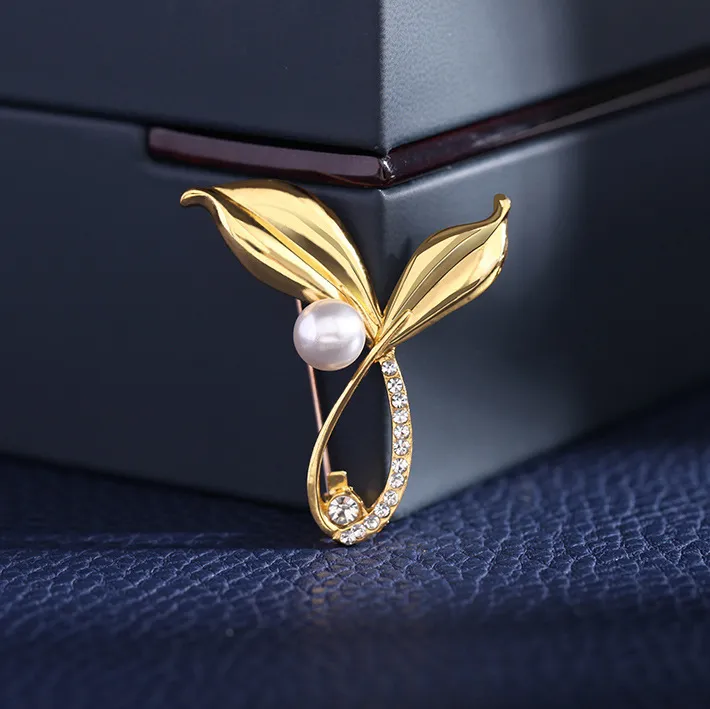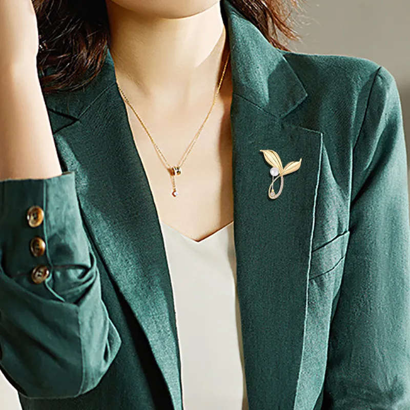 衣都精品- 2022冬季新款高檔設計感百搭魚尾樹葉胸針