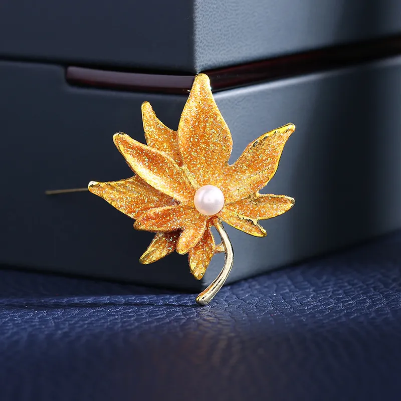 衣都精品- 2022冬季新款炫彩樹葉金色楓葉胸針