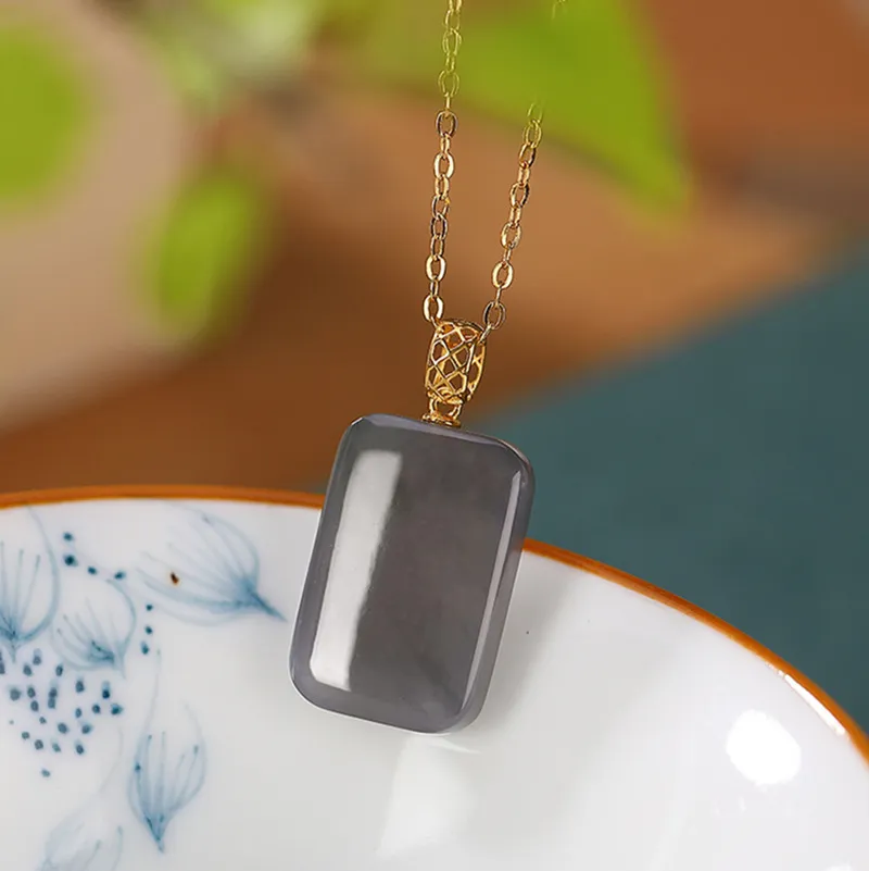 衣都精品- 2022冬季新款18K金青玉錢幣無事牌吊墜