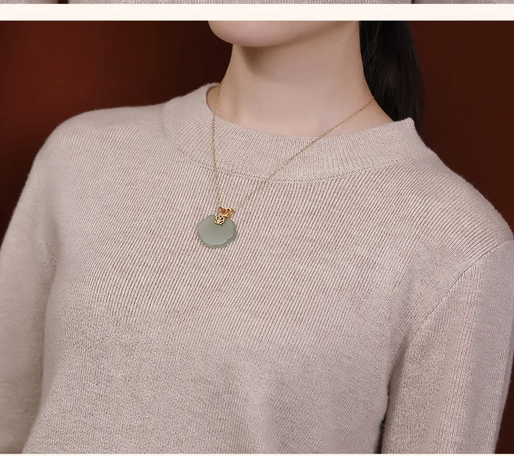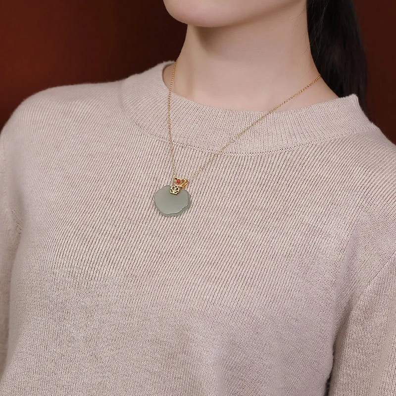 衣都精品- 2022冬季新款18K金青玉錢幣無事牌吊墜