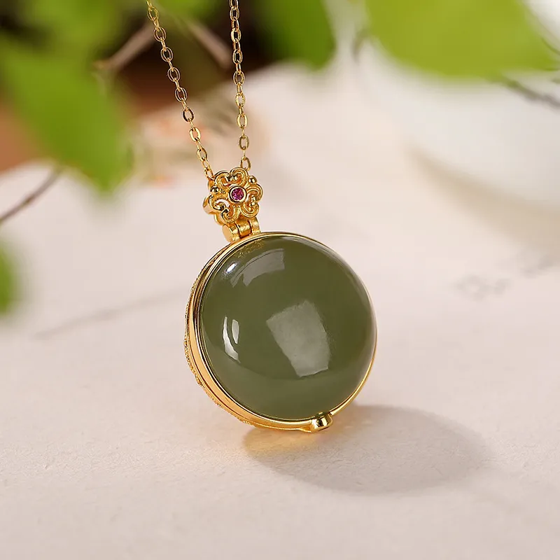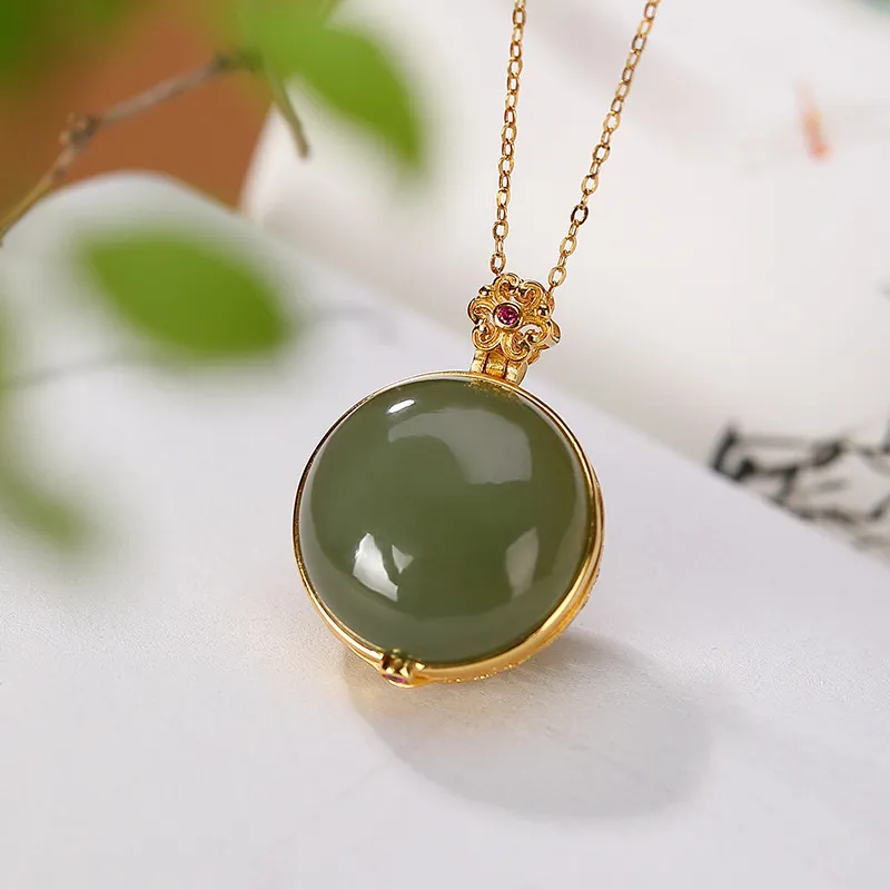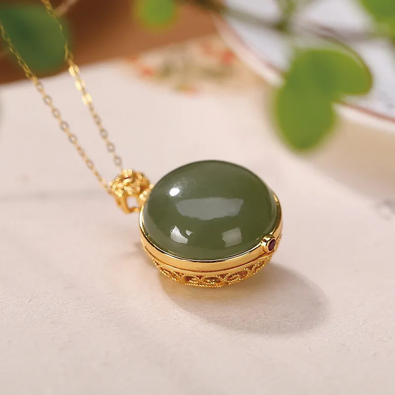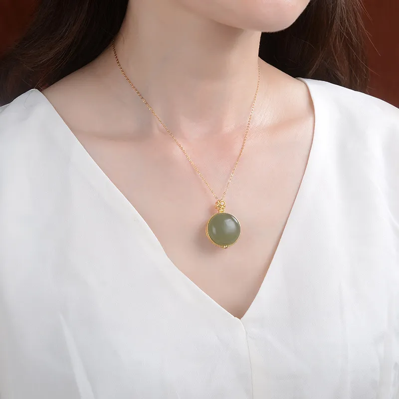 衣都精品- 2022冬季新款18K金青玉錢幣無事牌吊墜