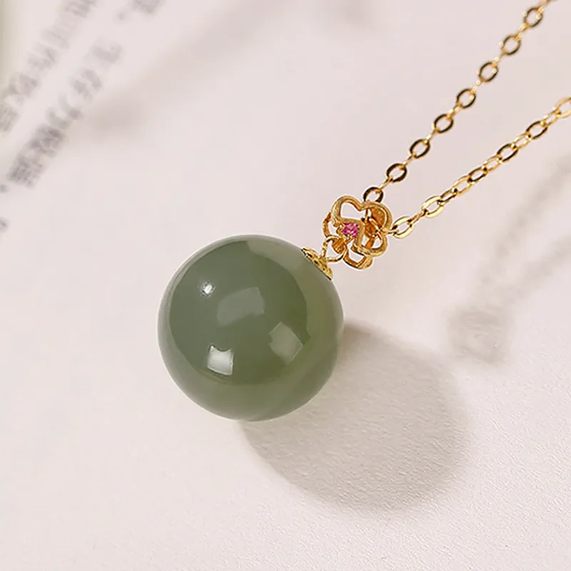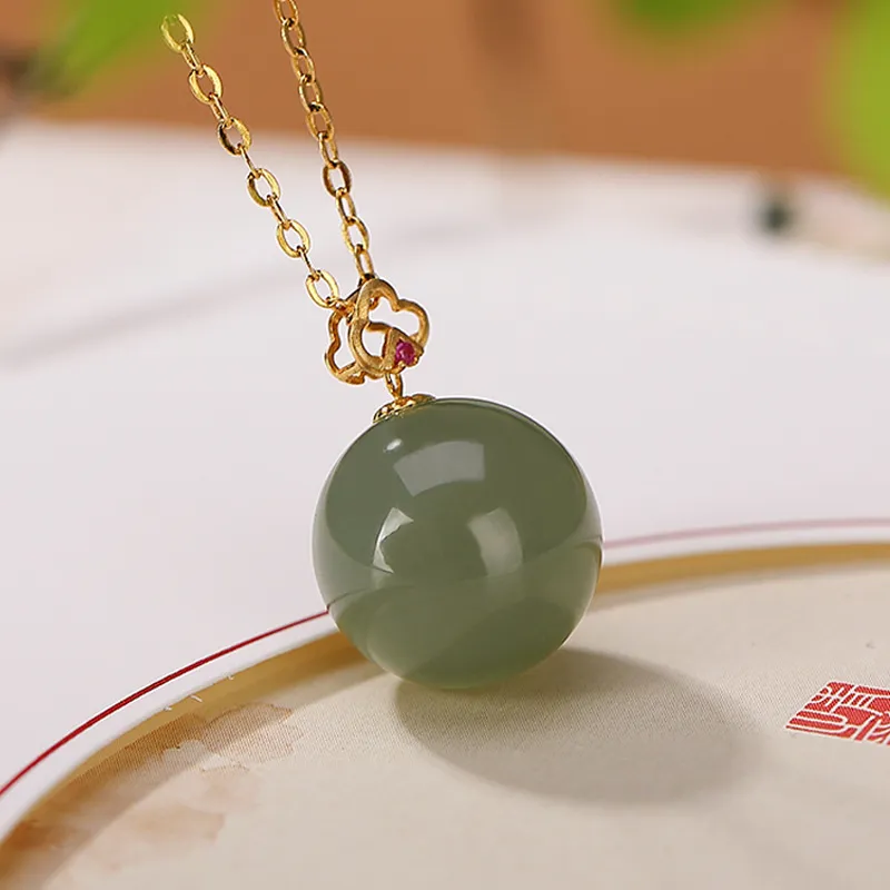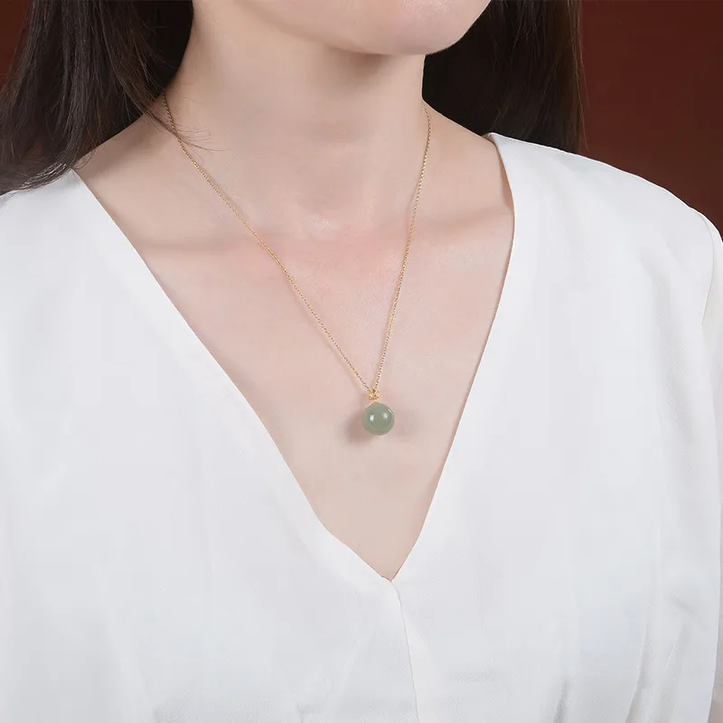 衣都精品- 2022冬季新款復古簡約個性如意青玉圓珠吊墜