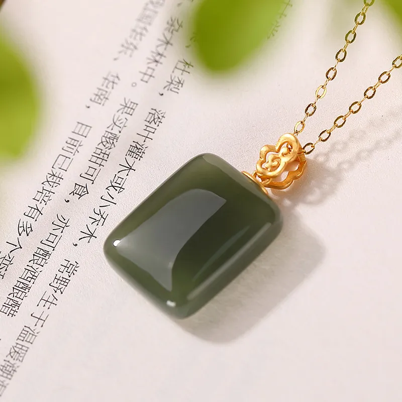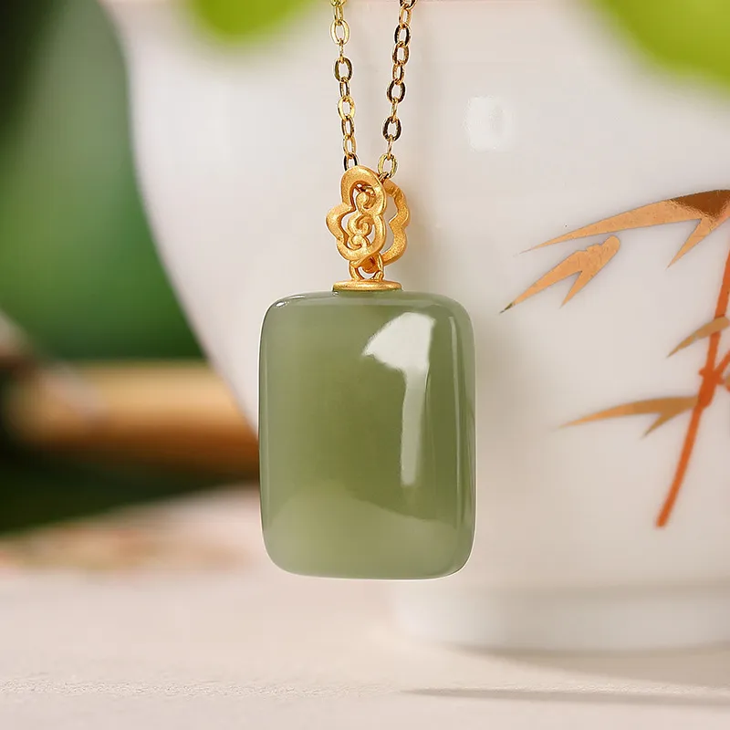衣都精品- 2022冬季新款18K金和田玉簡約無事牌吊墜